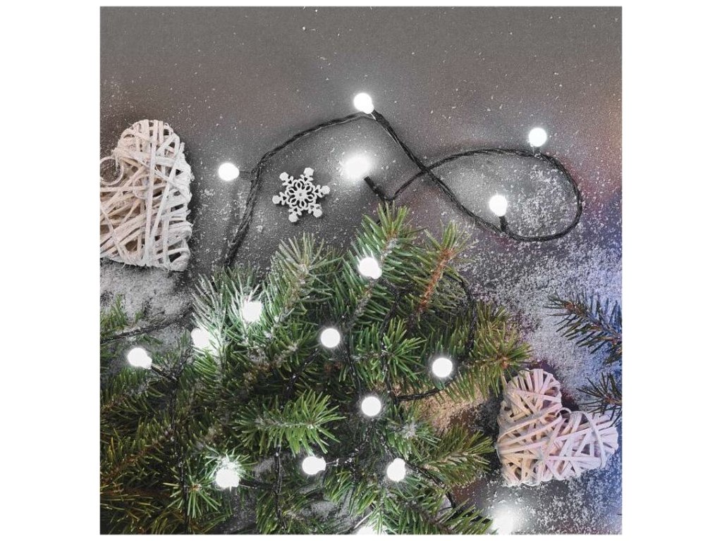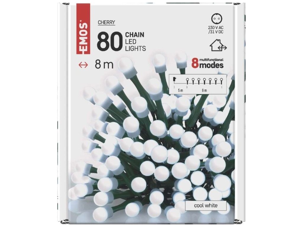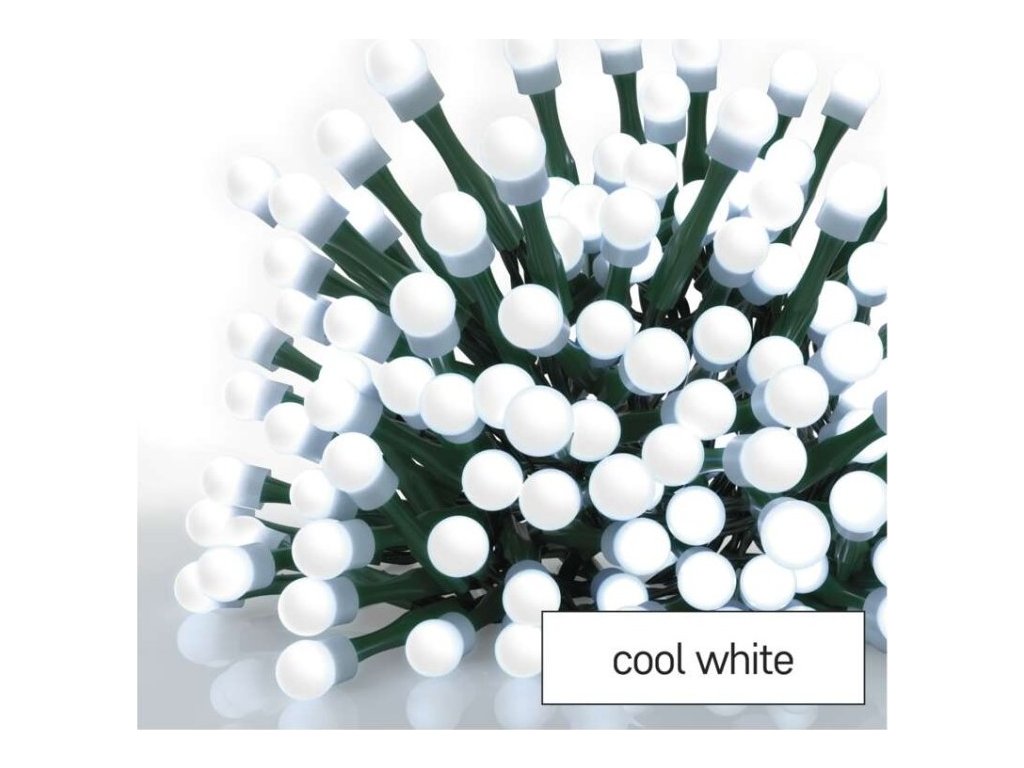 LED vánoční cherry řetěz – kuličky, 8 m, venkovní i vnitřní, studená bílá, programy