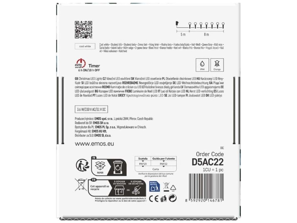 LED vánoční cherry řetěz – kuličky, 8 m, venkovní i vnitřní, studená bílá,programy,časovač