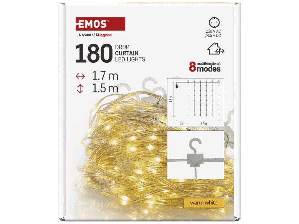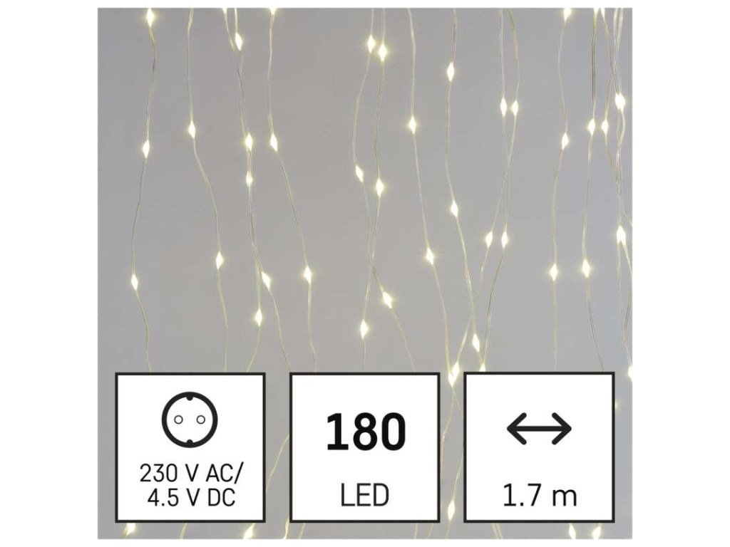LED vánoční drop řetěz – záclona, 1,7x1,5 m, venkovní i vnitřní, teplá bílá, programy