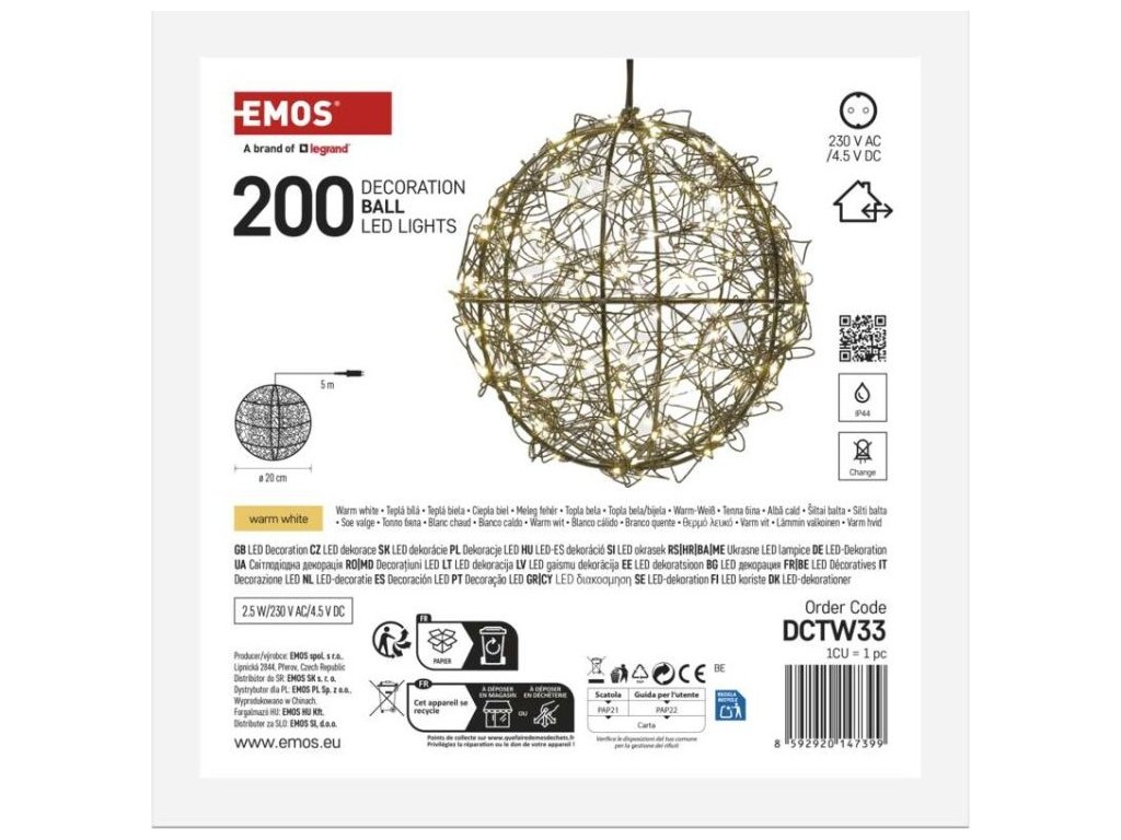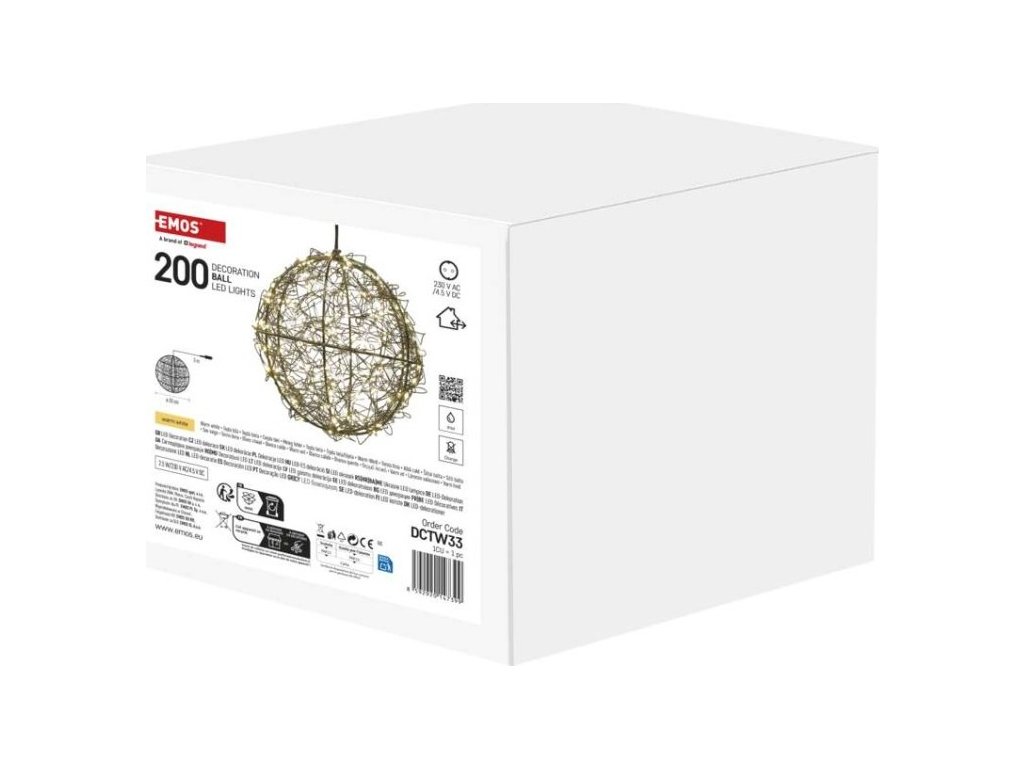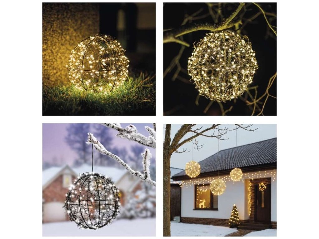 LED vánoční koule – 200 LED, venkovní i vnitřní, teplá bílá