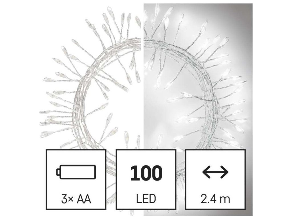 LED vánoční nano řetěz – ježek, 2,4 m, 3x AA, vnitřní, studená bílá, časovač