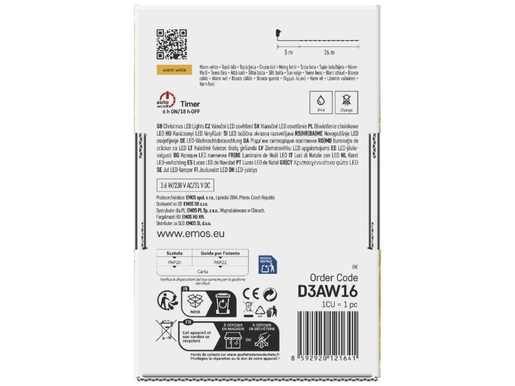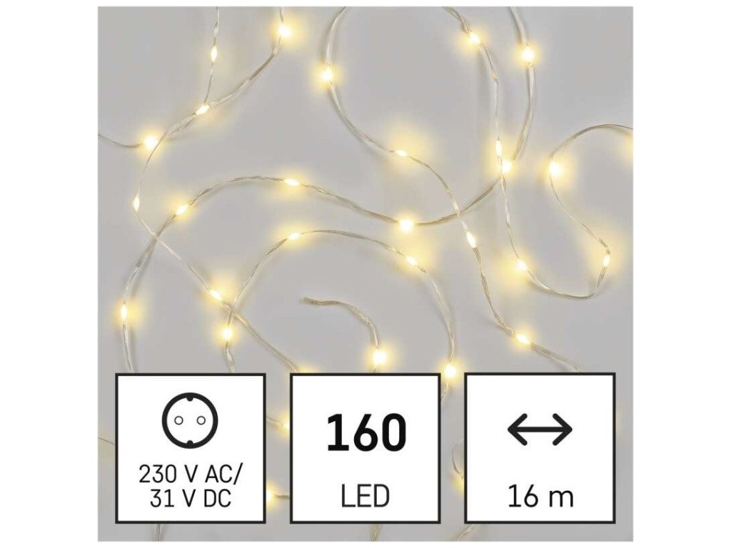 LED vánoční nano řetěz, 16 m, venkovní i vnitřní, teplá bílá, časovač