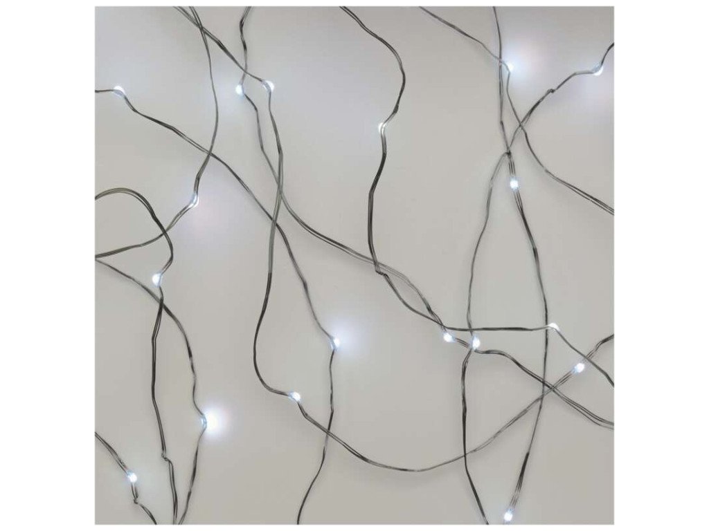 LED vánoční nano řetěz stříbrný, 10 m, venkovní i vnitřní, studená bílá, časovač