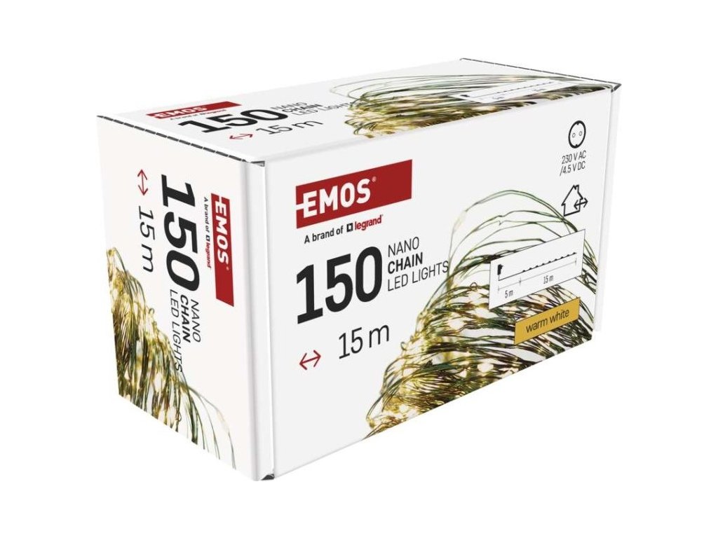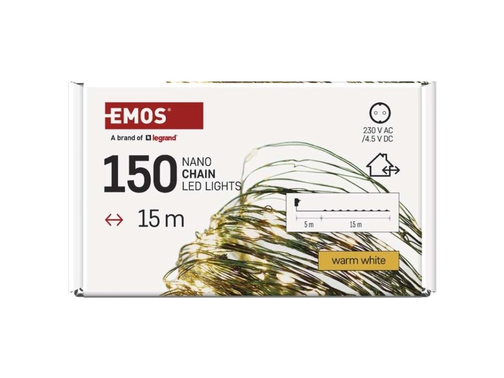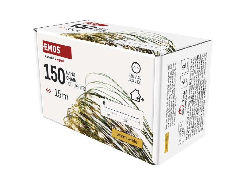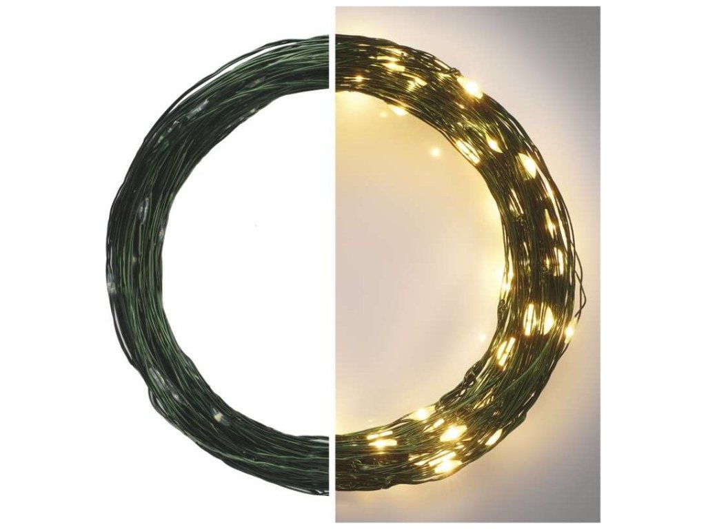 LED vánoční nano řetěz zelený, 15 m, venkovní i vnitřní, teplá bílá, časovač