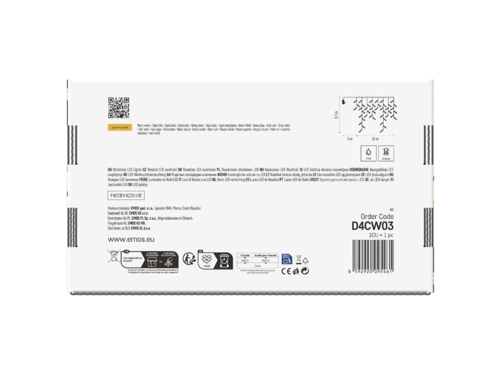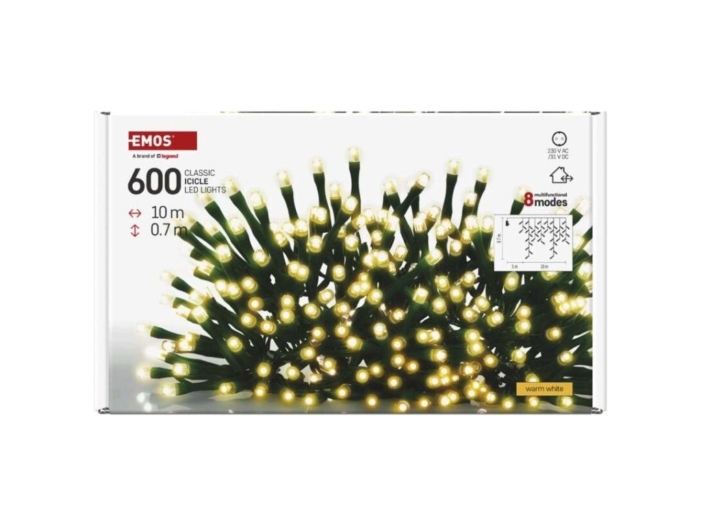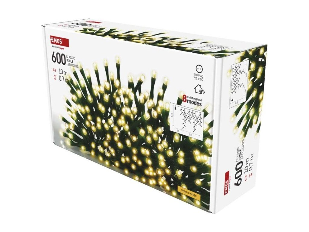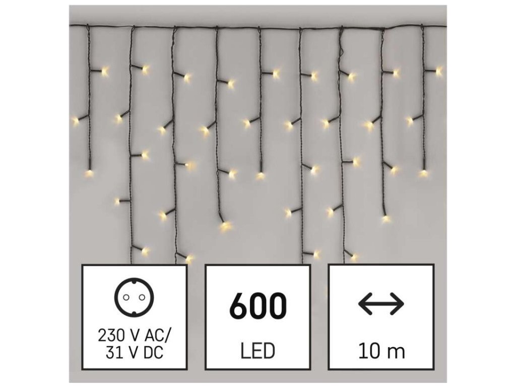 LED vánoční rampouchy, 10 m, venkovní i vnitřní, teplá bílá, programy, časovač