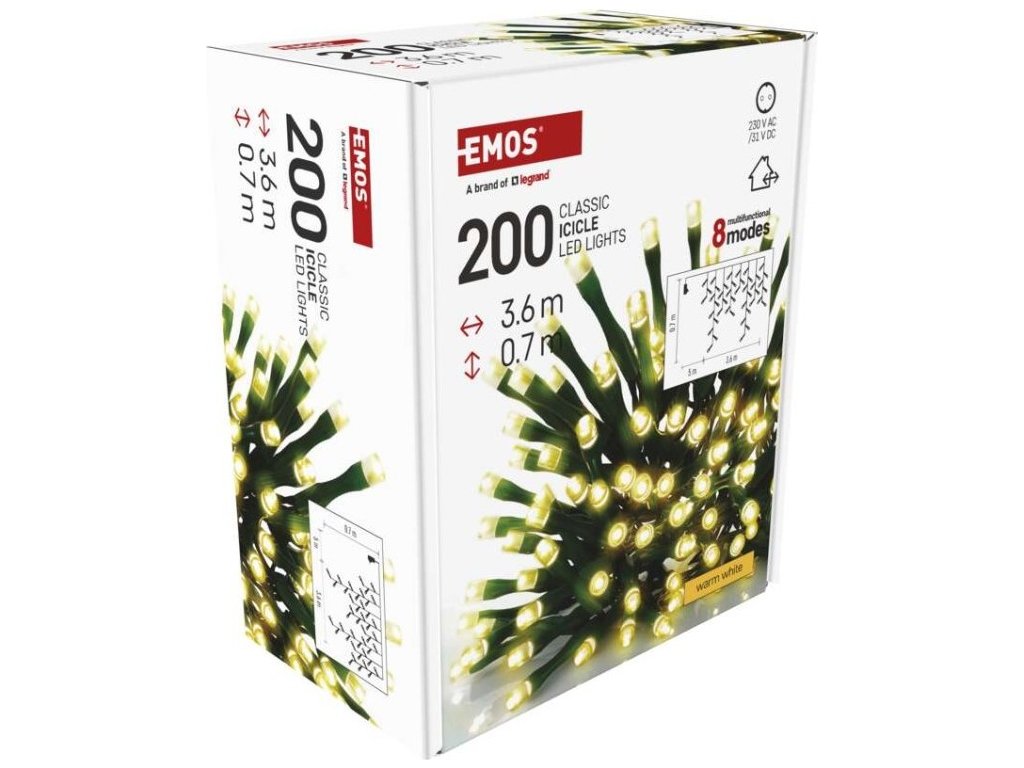 LED vánoční rampouchy, 3,6 m, venkovní i vnitřní, teplá bílá, programy, časovač