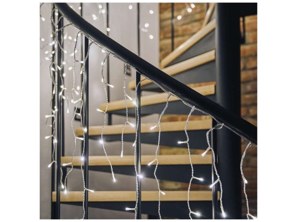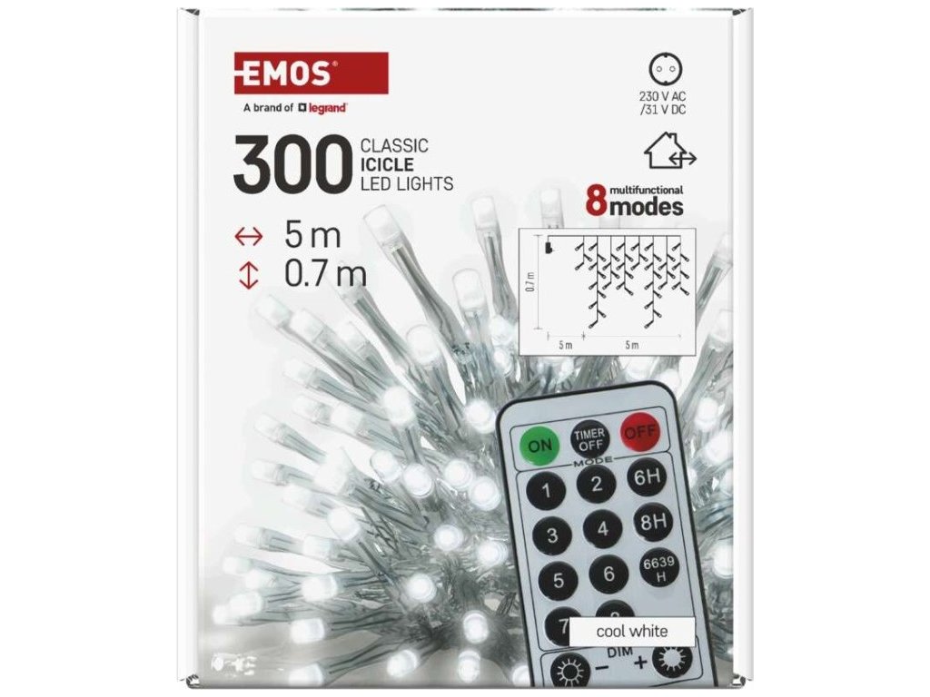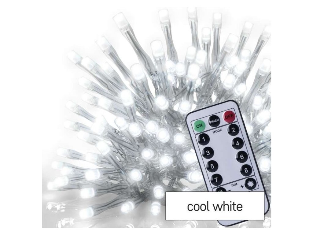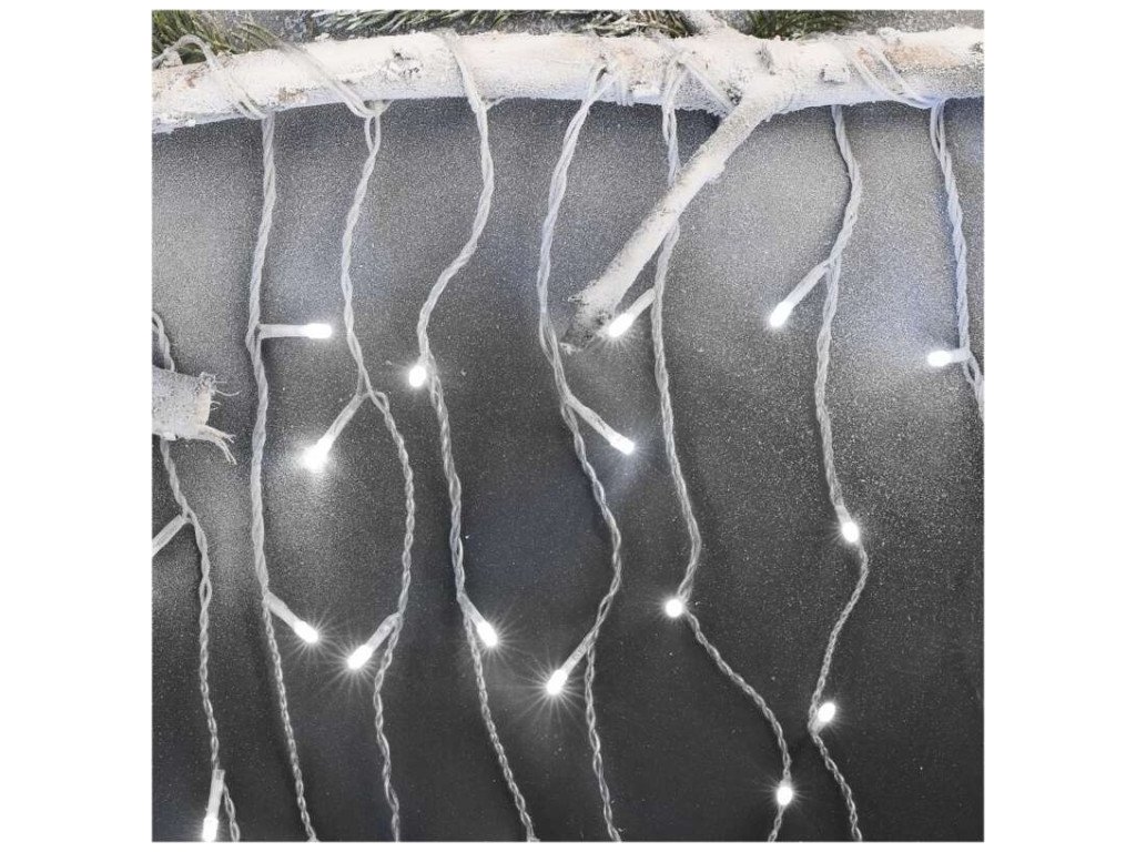 LED vánoční rampouchy, 5 m, venkovní i vnitřní, studená bílá, ovladač, programy, časovač