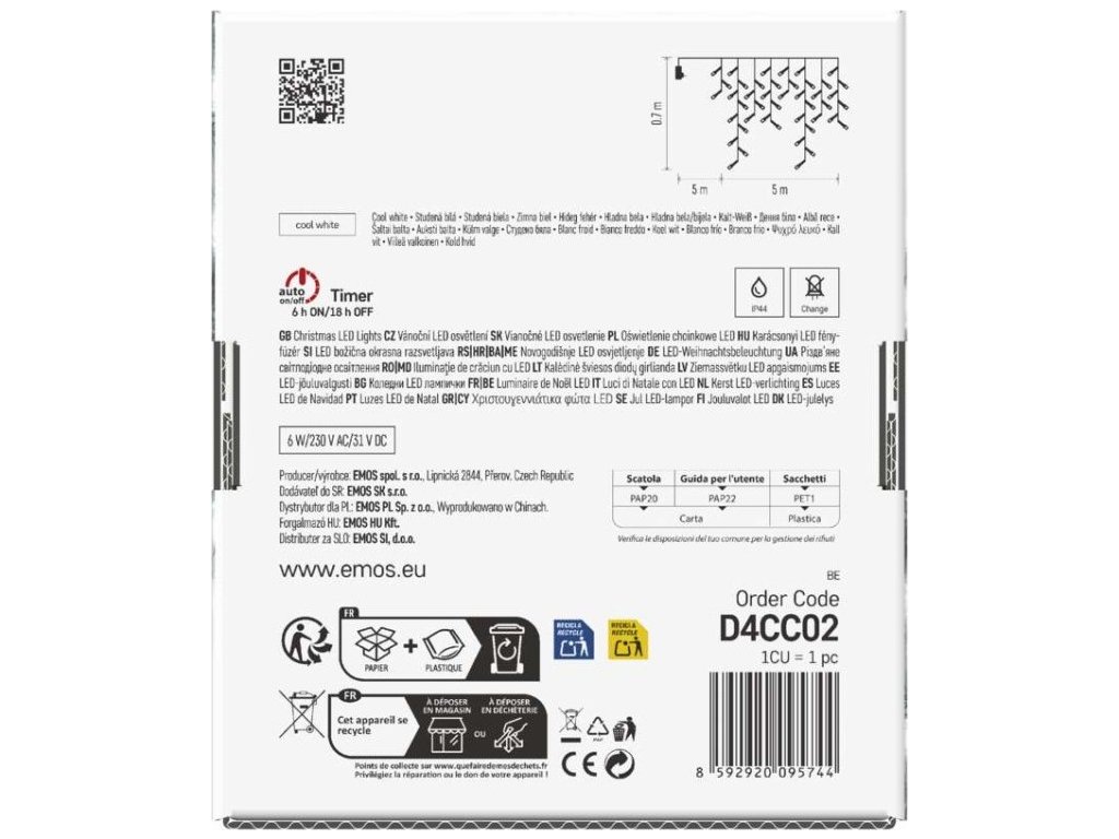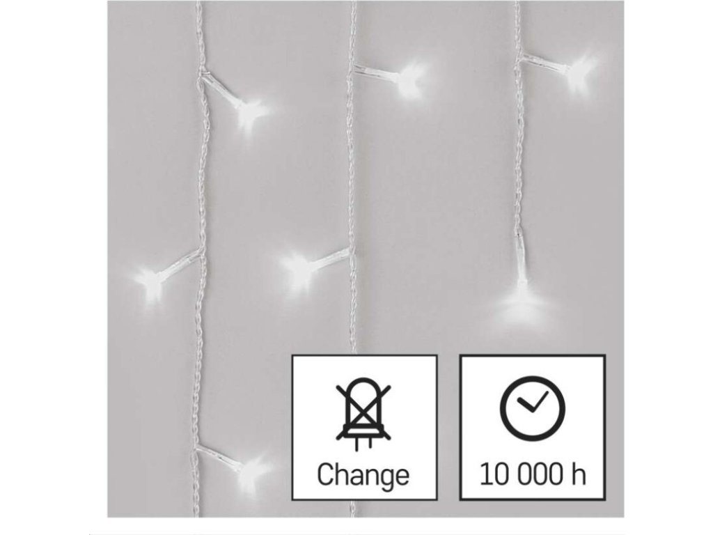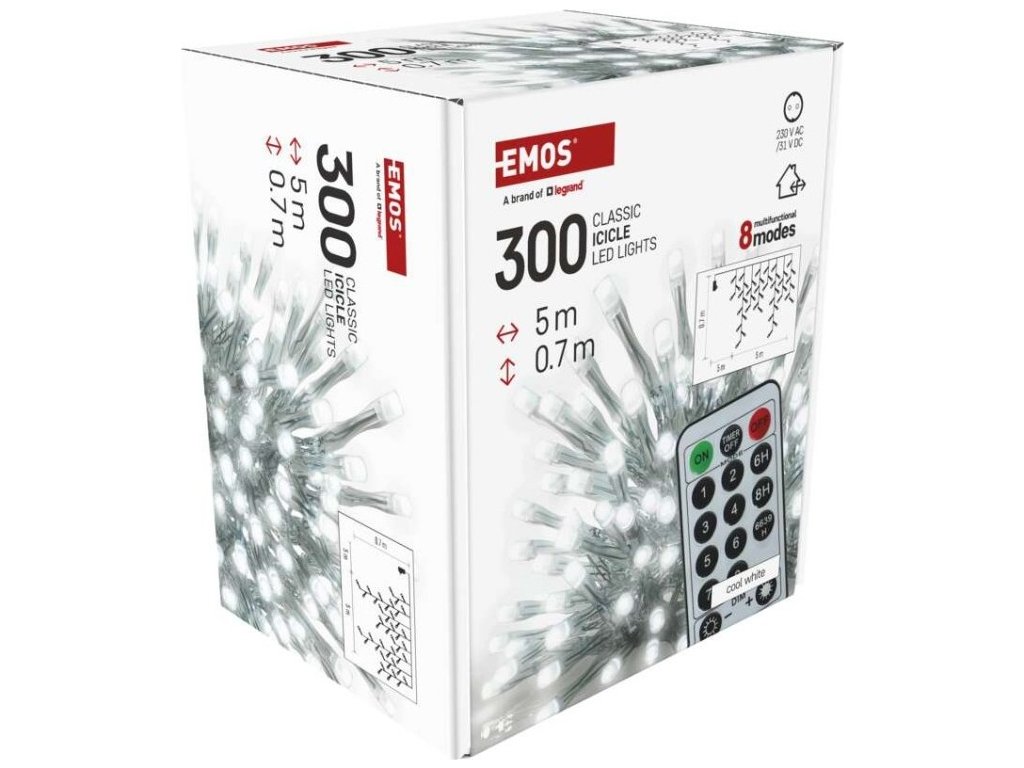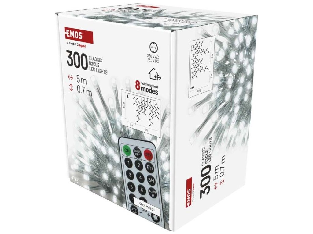 LED vánoční rampouchy, 5 m, venkovní i vnitřní, studená bílá, ovladač, programy, časovač