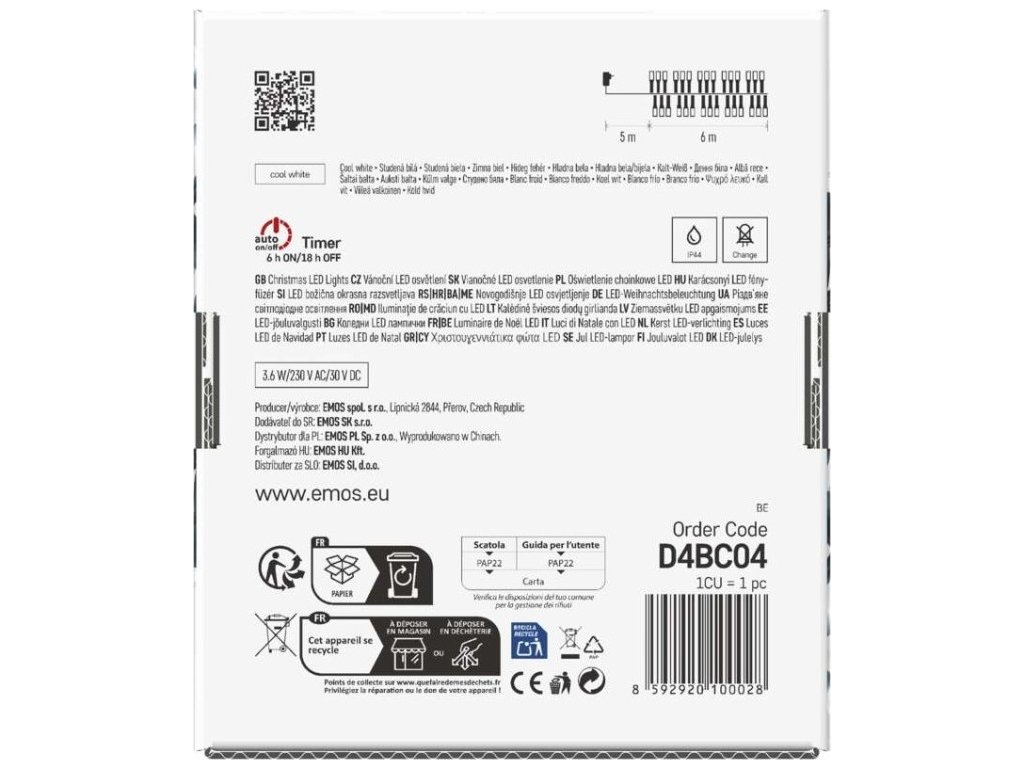LED vánoční řetěz – ježek, 6 m, venkovní i vnitřní, studená bílá, časovač