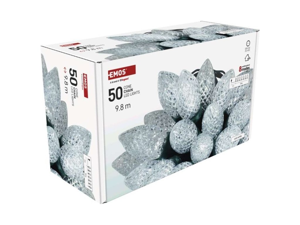 LED vánoční řetěz – šišky, 9,8 m, venkovní i vnitřní, studená bílá, programy