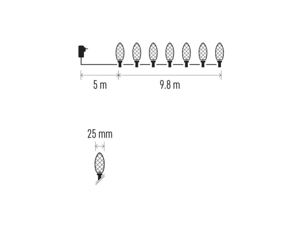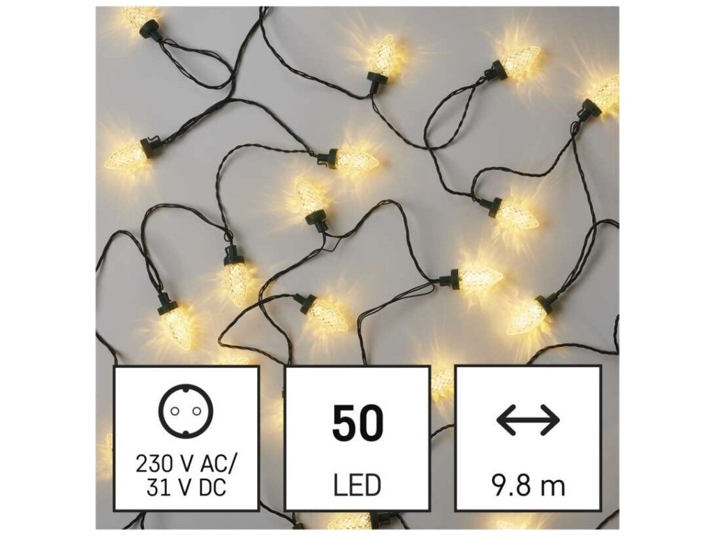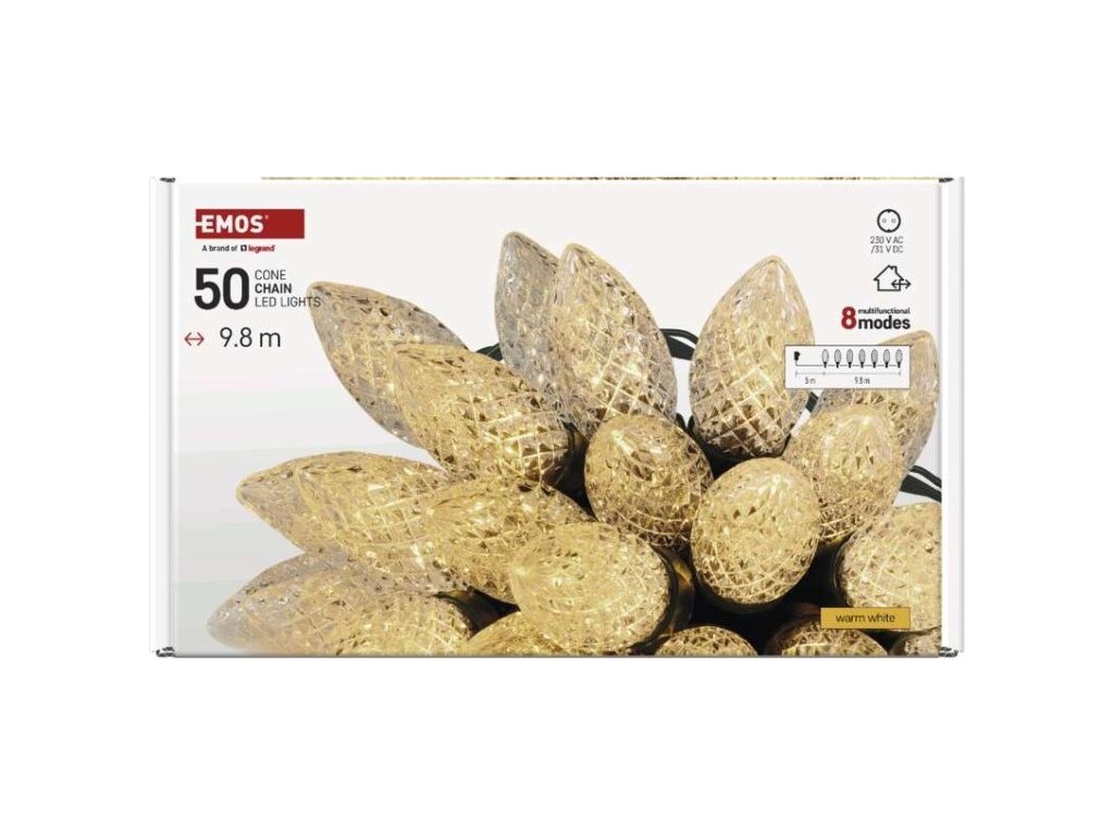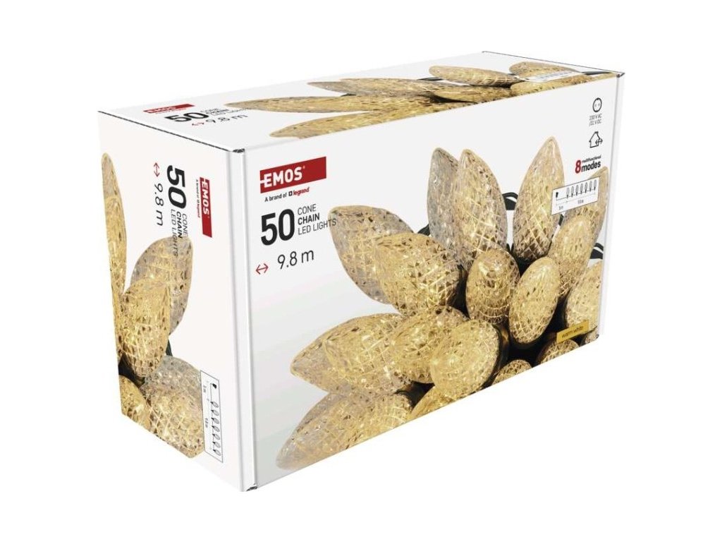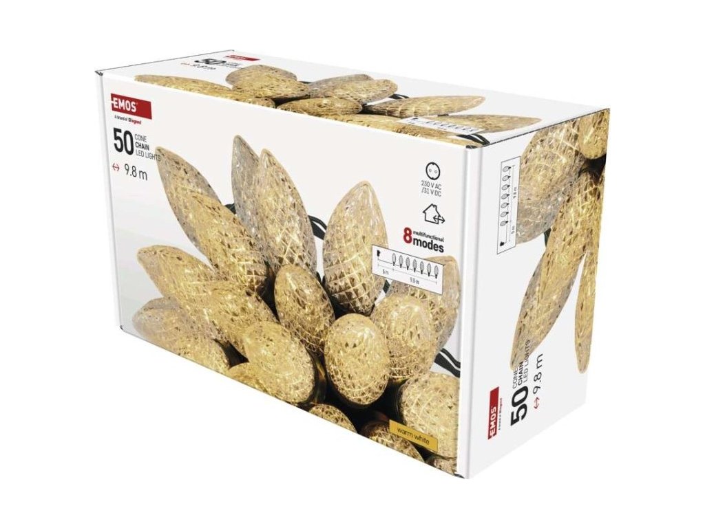 LED vánoční řetěz – šišky, 9,8 m, venkovní i vnitřní, teplá bílá, programy