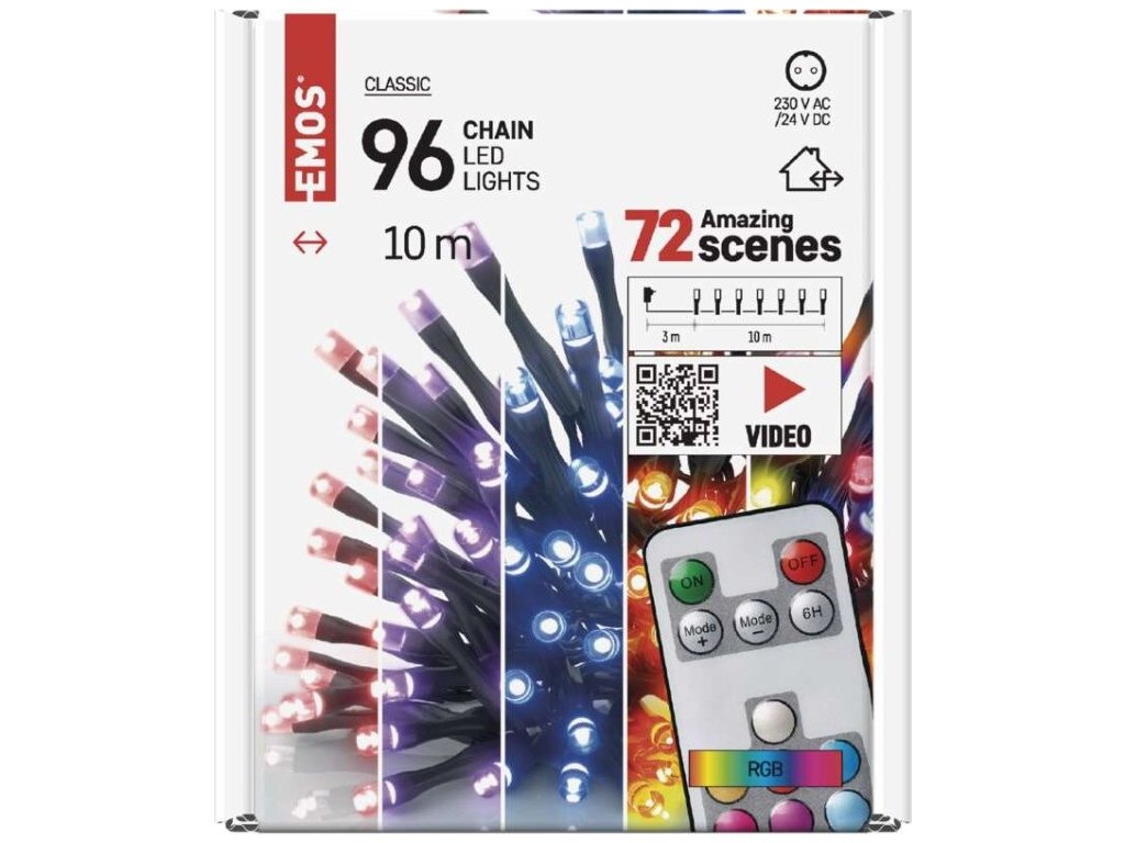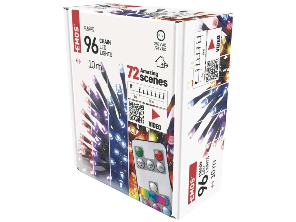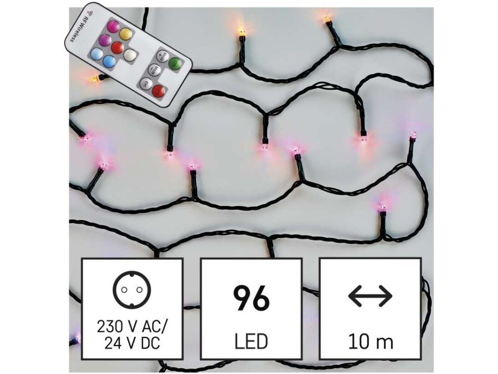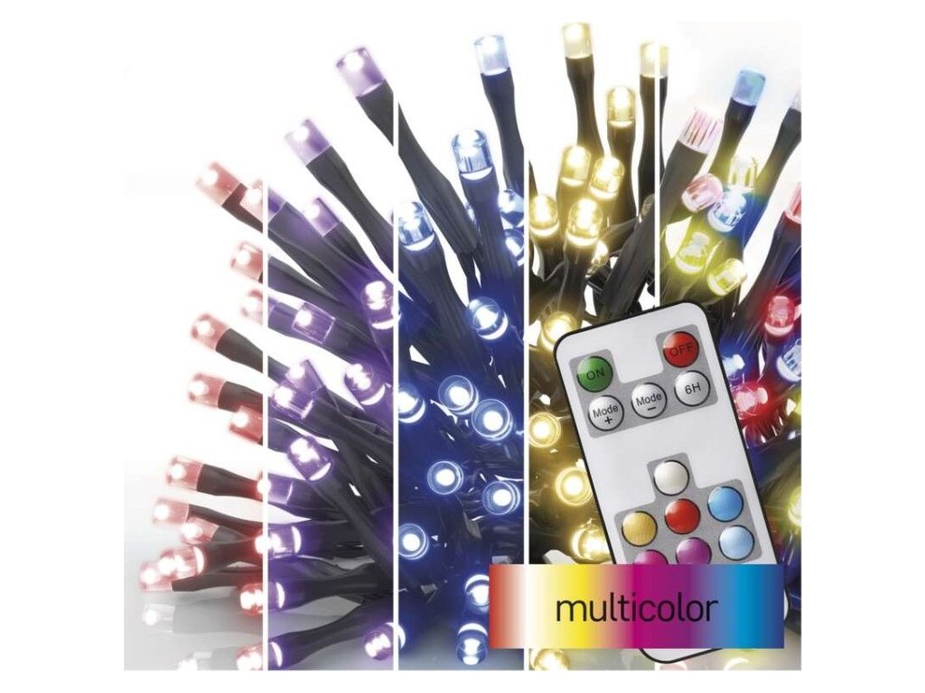 LED vánoční řetěz, 10 m, venkovní i vnitřní, RGB, ovladač, programy, časovač