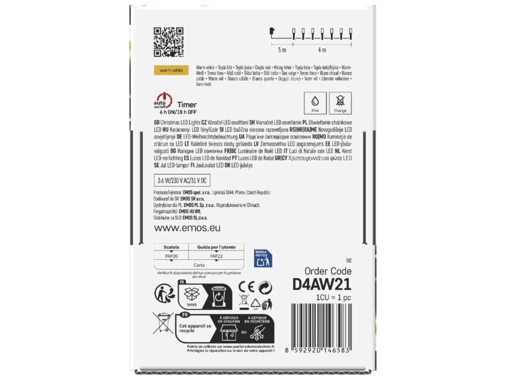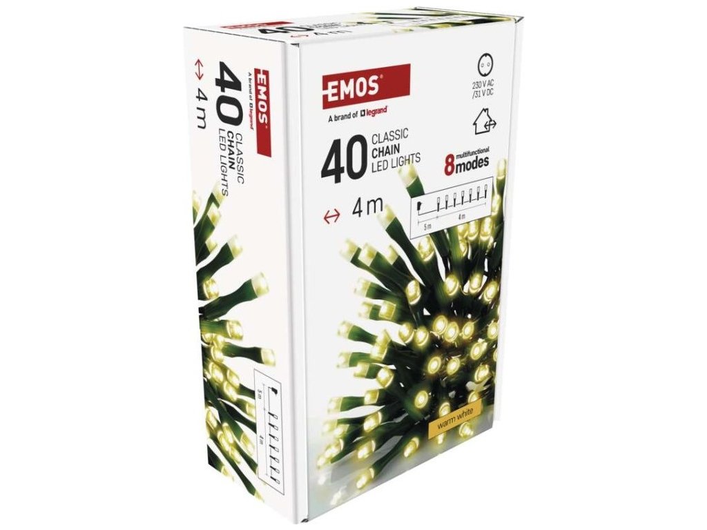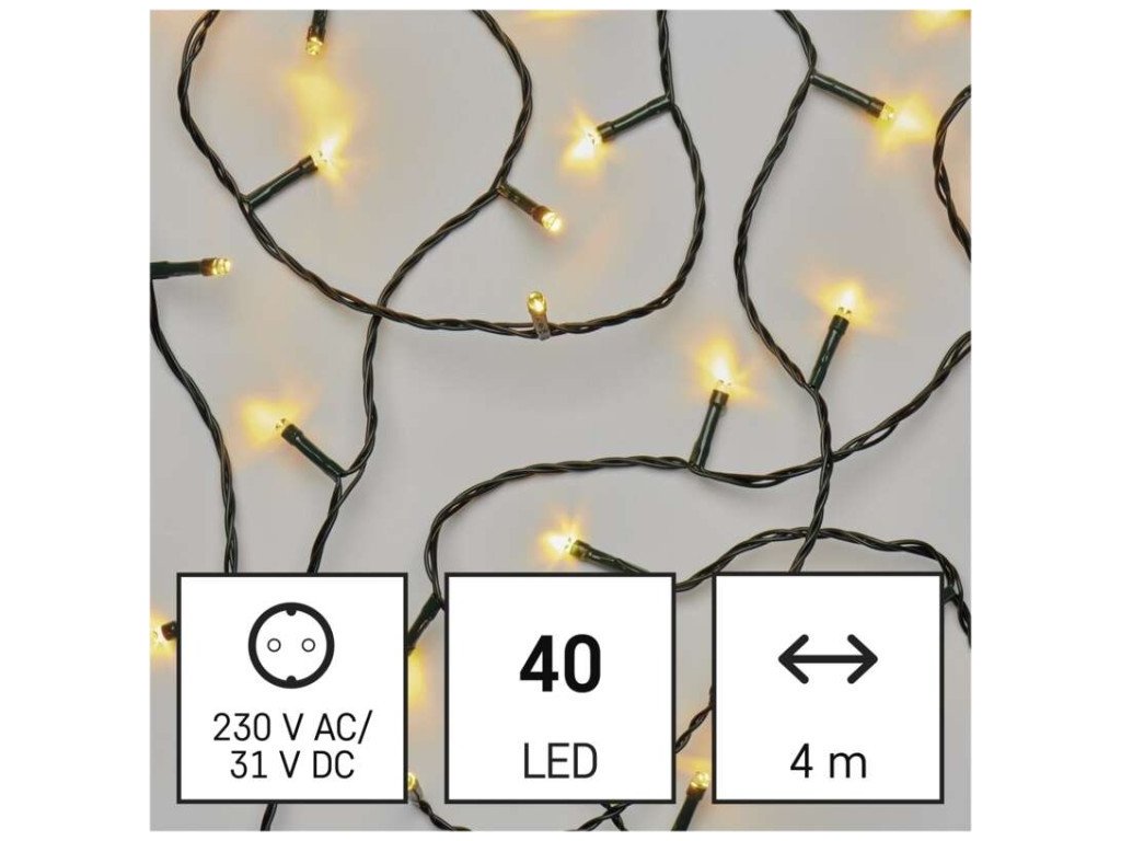 LED vánoční řetěz, 4 m, venkovní i vnitřní, teplá bílá, programy, časovač