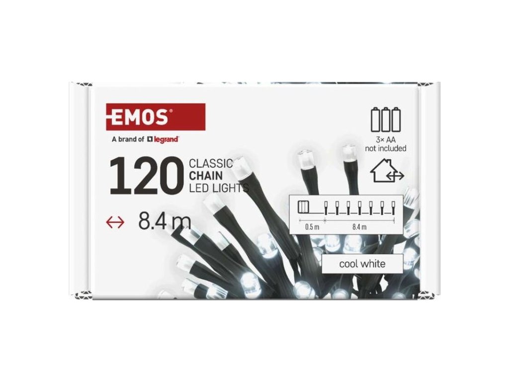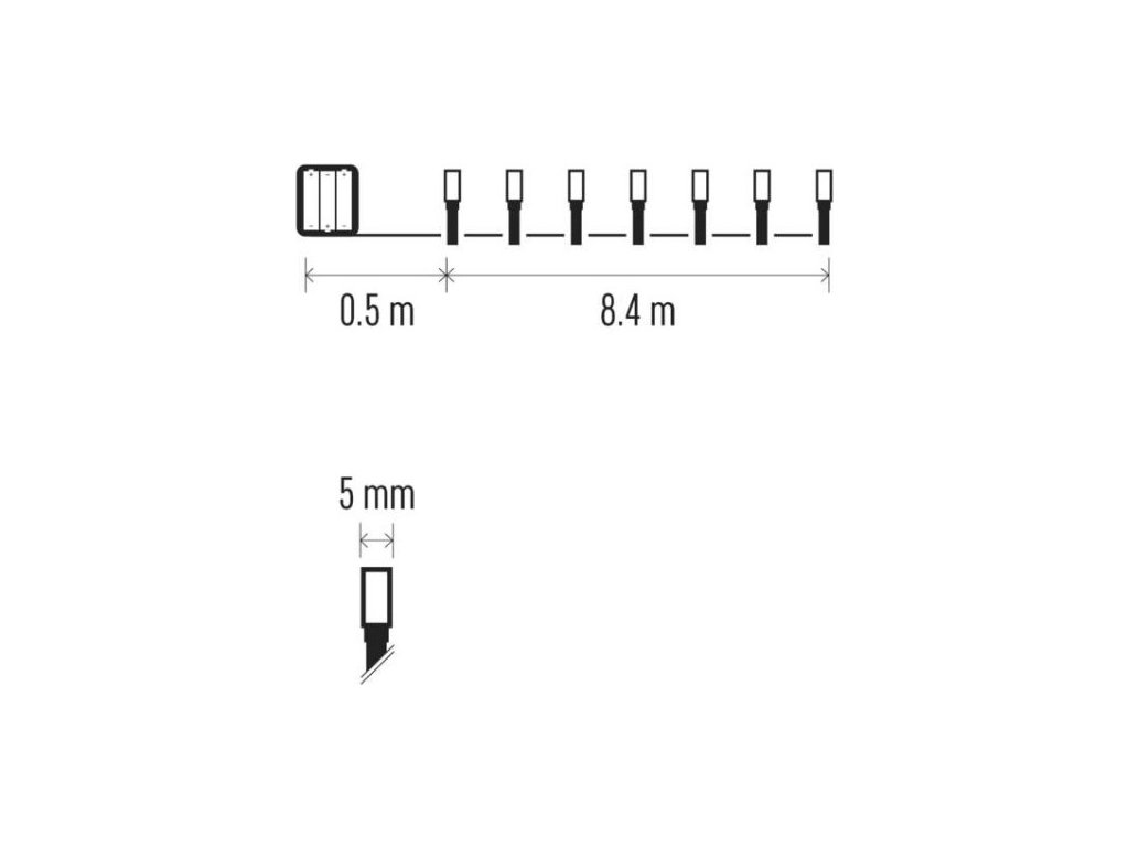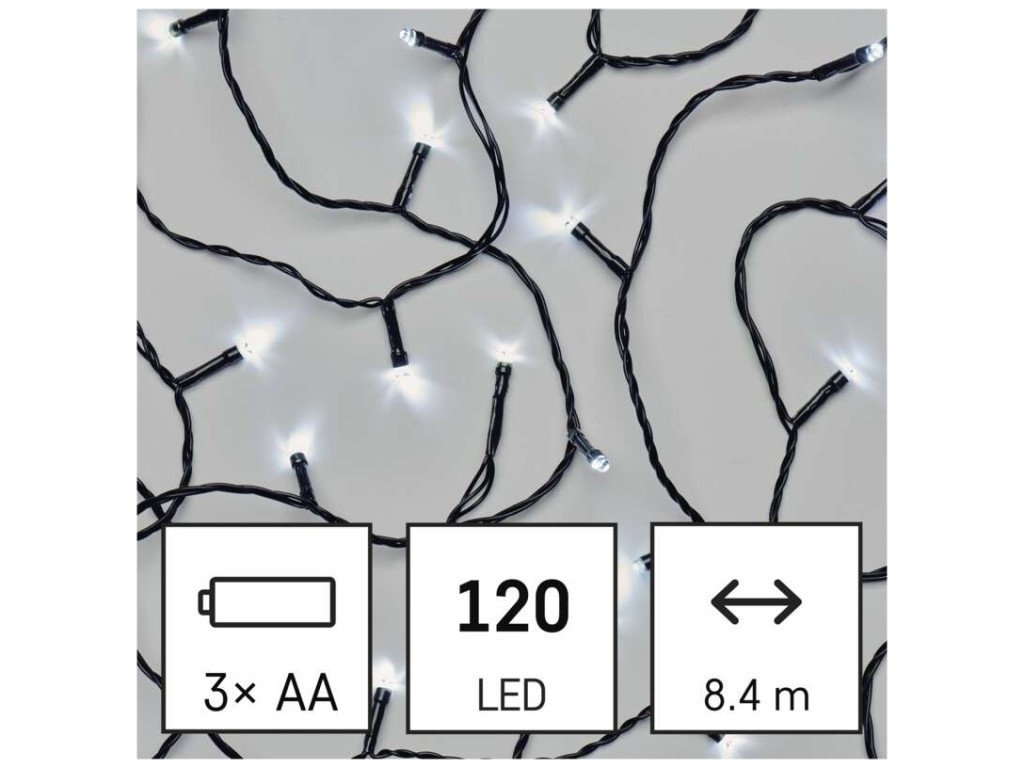 LED vánoční řetěz, 8,4 m, 3x AA, venkovní i vnitřní, studená bílá, časovač