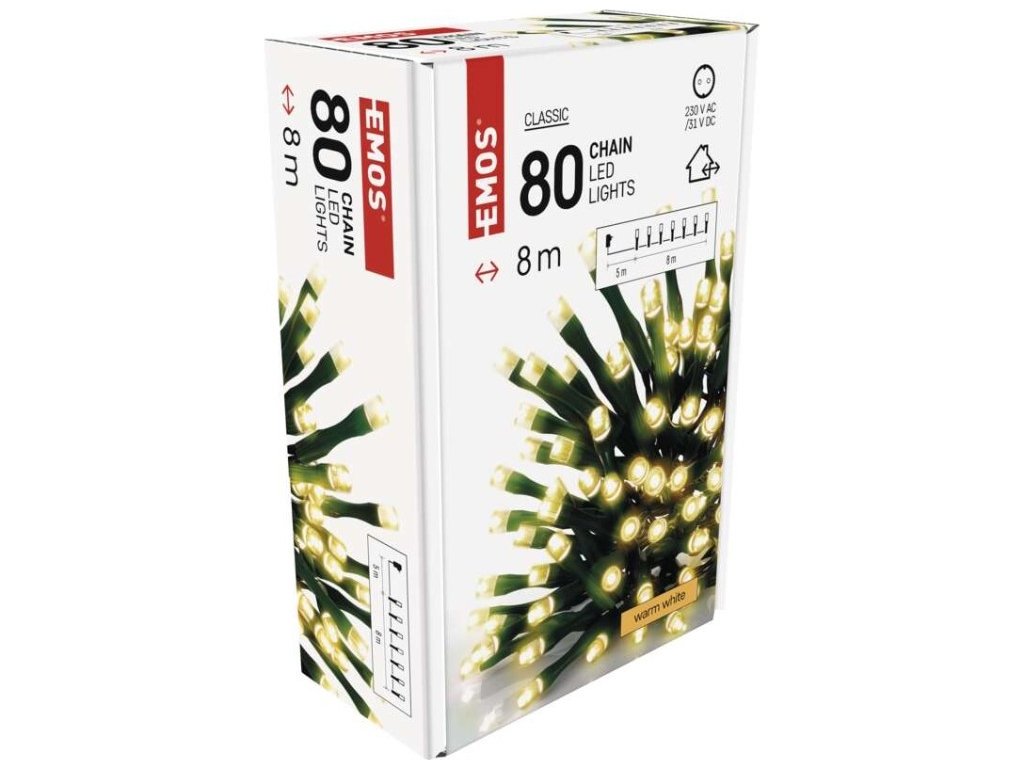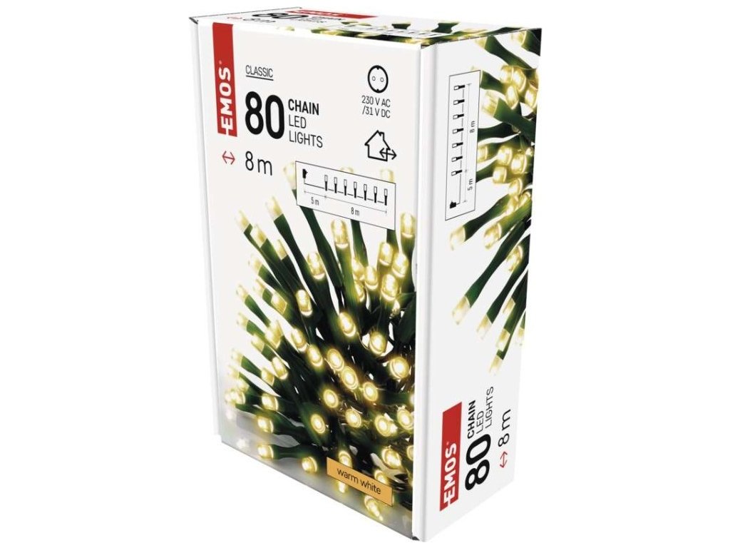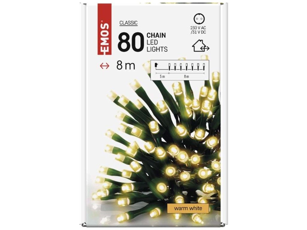 LED vánoční řetěz, 8 m, venkovní i vnitřní, teplá bílá, časovač