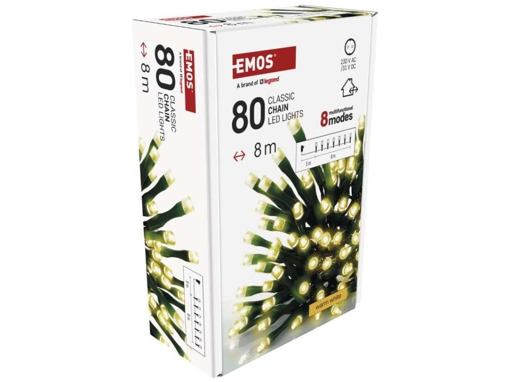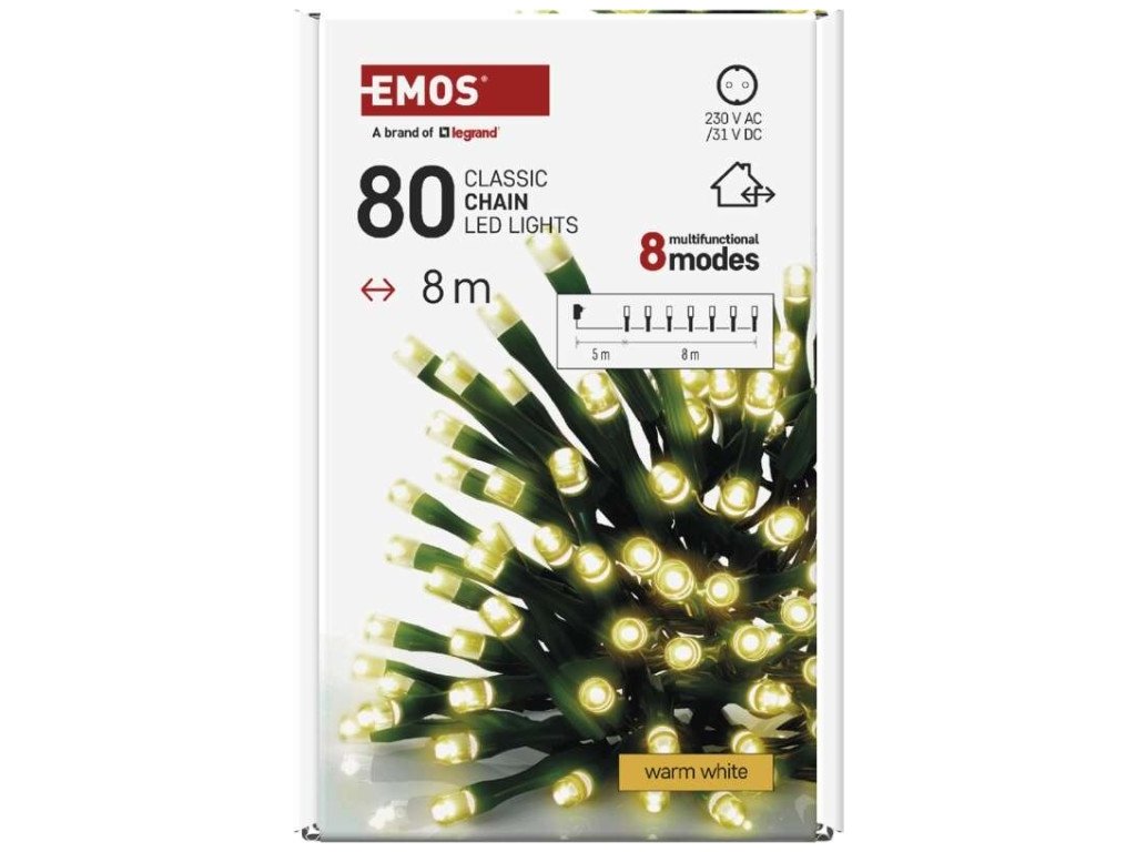 LED vánoční řetěz, 8 m, venkovní i vnitřní, teplá bílá, programy, časovač