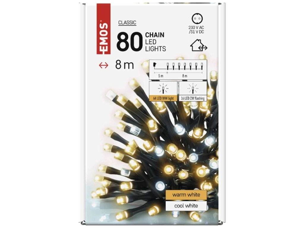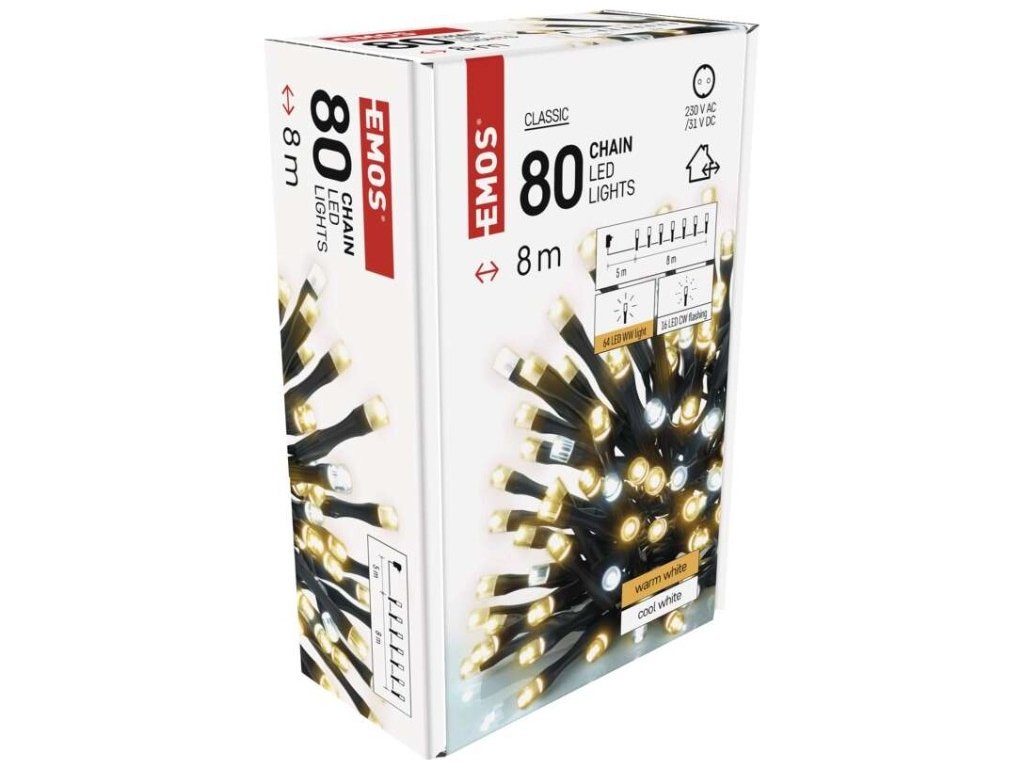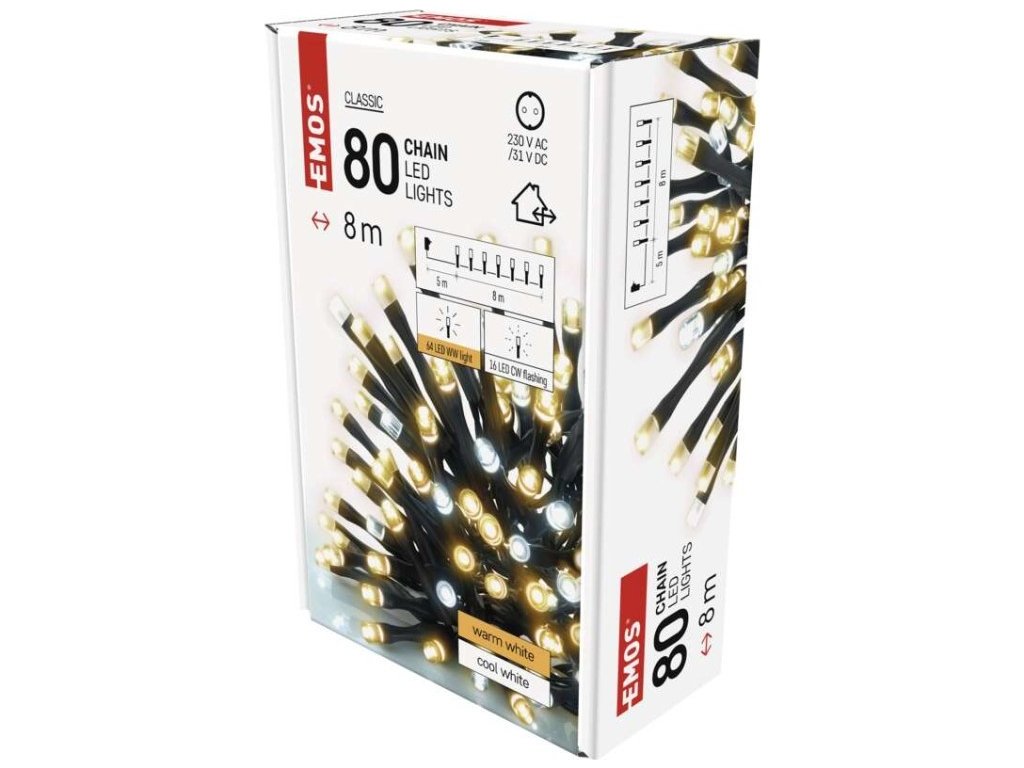 LED vánoční řetěz blikající, 8 m, venkovní i vnitřní, teplá/studená bílá, časovač