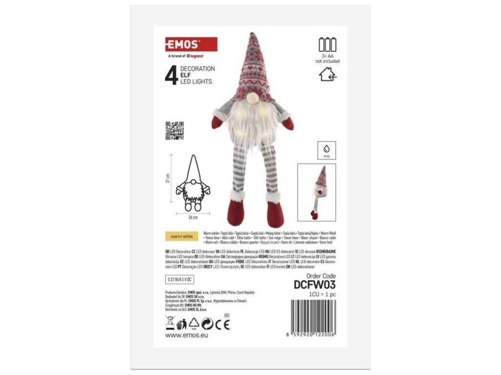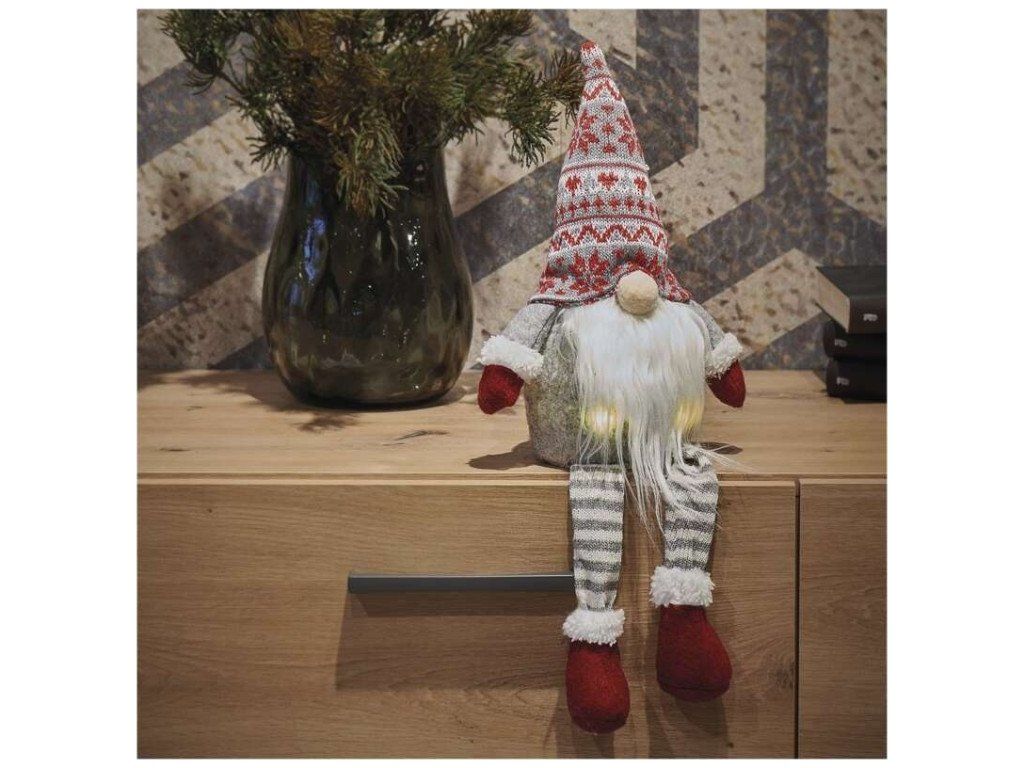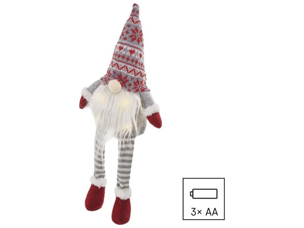 LED vánoční skřítek sedící, 27 cm, 3x AA, vnitřní, teplá bílá