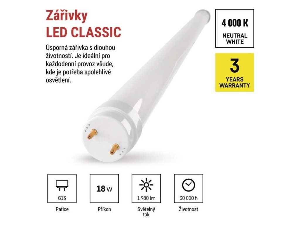 LED zářivka T8 18 W 120 cm neutrální bílá
