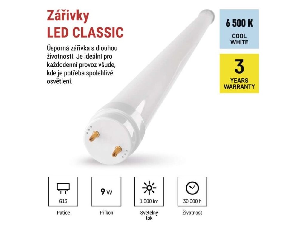 LED zářivka T8 9 W 60 cm studená 25 ks