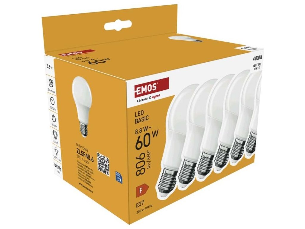 LED žárovka Basic A60 / E27 / 8,8 W (60 W) / 806 lm / neutrální bílá