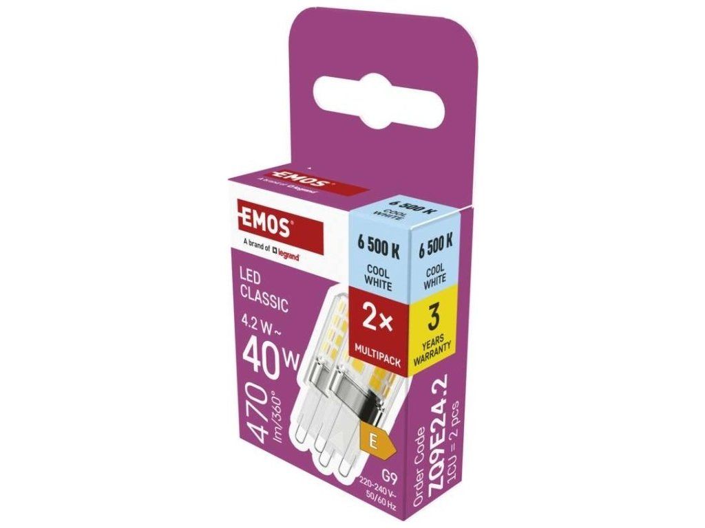 LED žárovka Classic JC / G9 / 4,2 W (40 W) / 470 lm / studená bílá / 2 ks