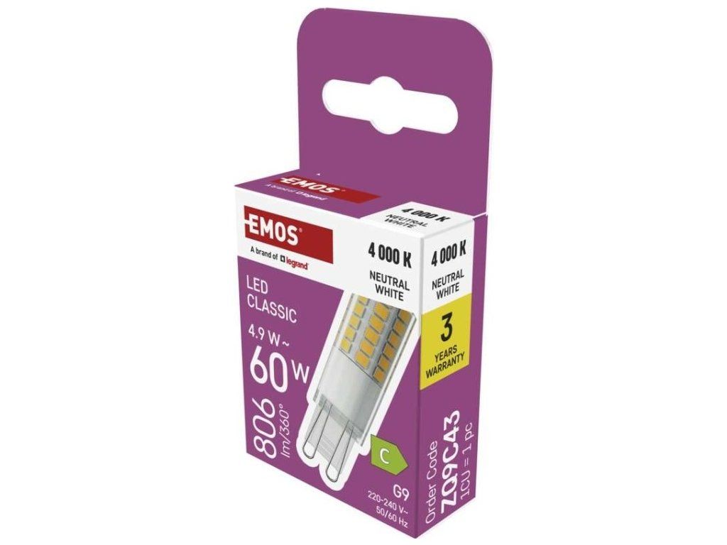 LED žárovka Classic JC / G9 / 4,9 W (60 W) / 806 lm / neutrální bílá