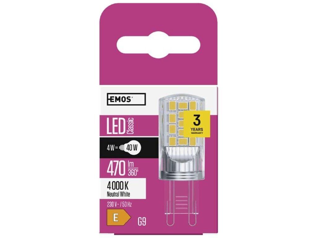 LED žárovka Classic JC / G9 / 4 W (40 W) / 470 lm / neutrální bílá