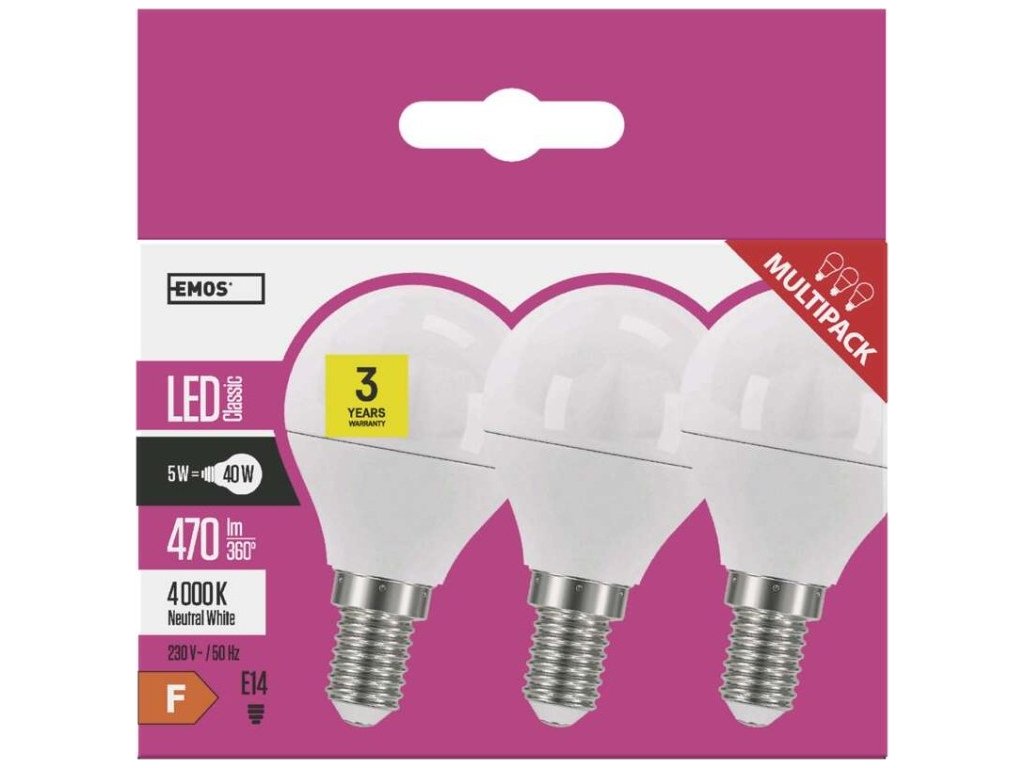 LED žárovka Classic Mini Globe / E14 / 5 W (40 W) / 470 lm / neutrální bílá