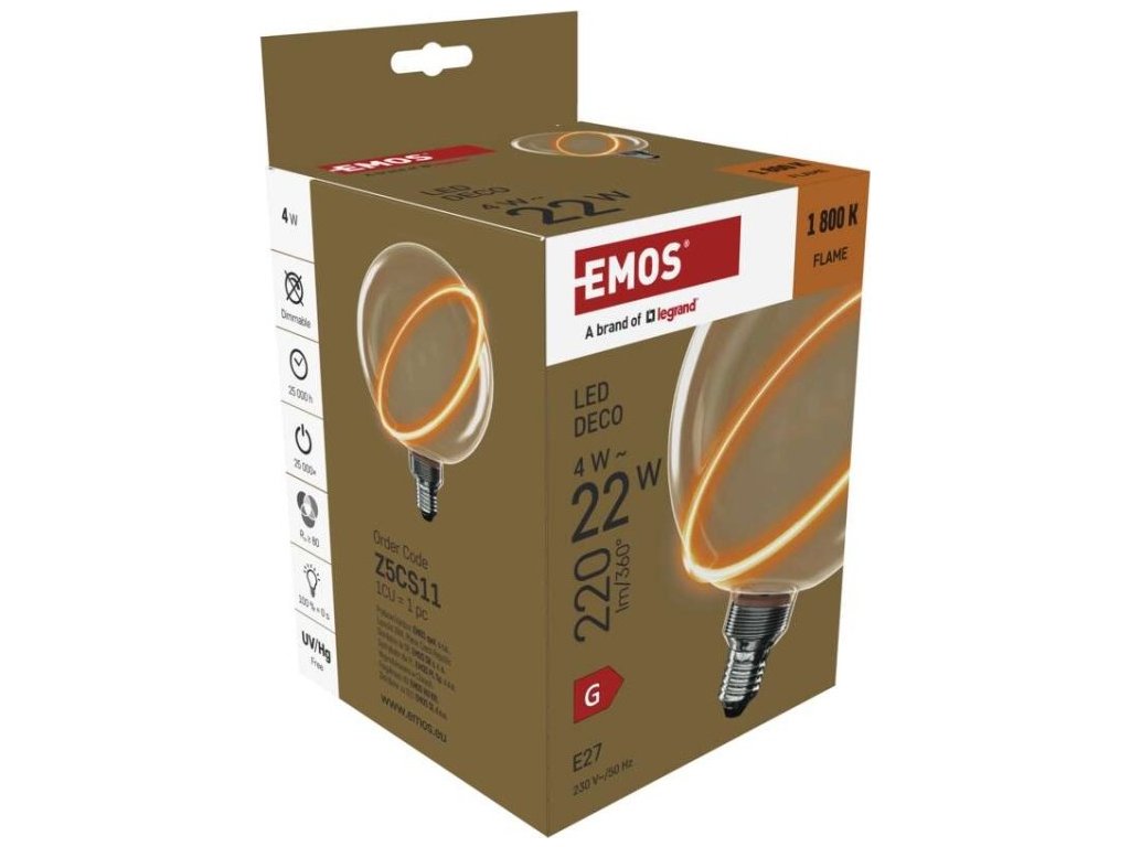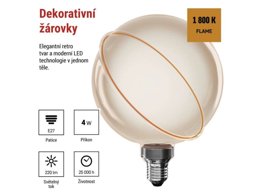 LED žárovka DECO G130SRA / E27 / 4 W (22 W) / 220 lm / flame