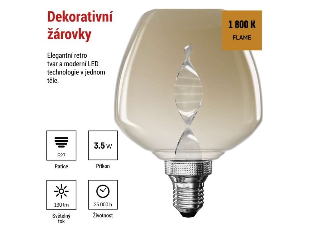 LED žárovka DECO S123 / E27 / 3,5 W (14 W) / 130 lm / flame