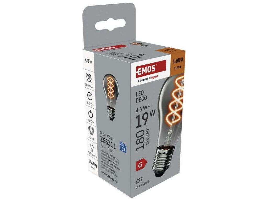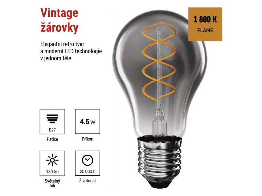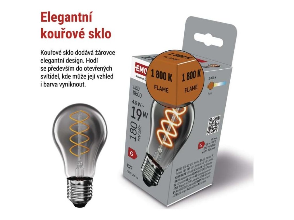LED žárovka DECO SMOKED A60 / E27 / 4,5 W (19 W) / 180 lm / flame