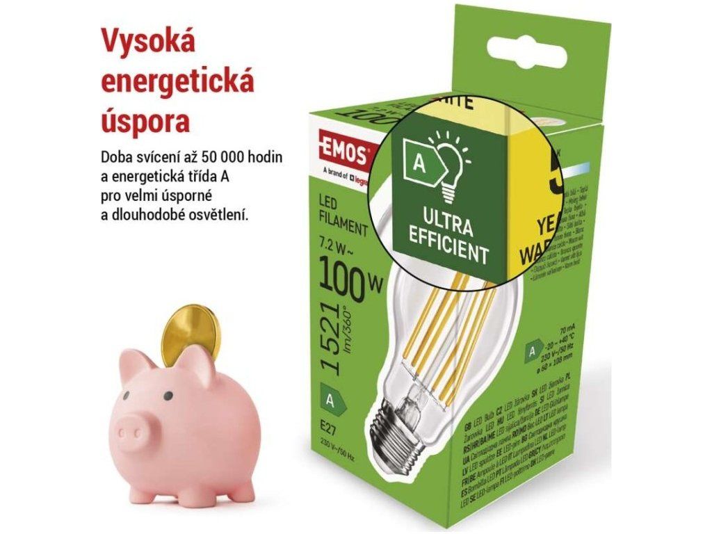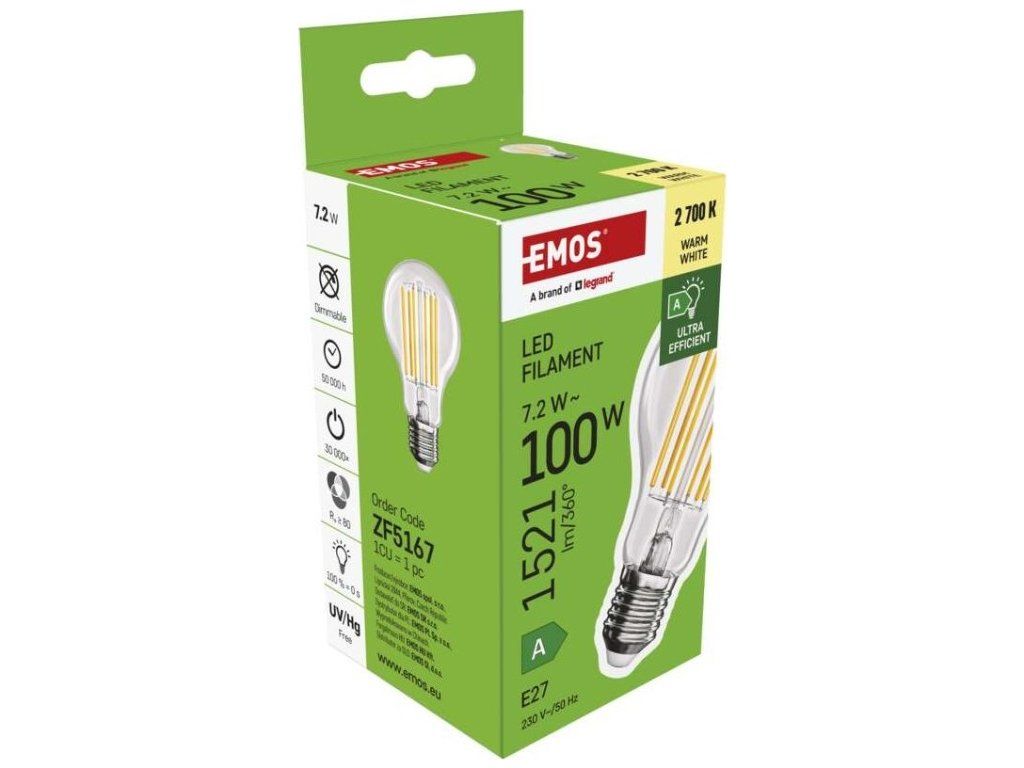 LED žárovka Filament A60 A CLASS / E27 / 7,2 W (100 W) / 1521 lm / teplá bílá