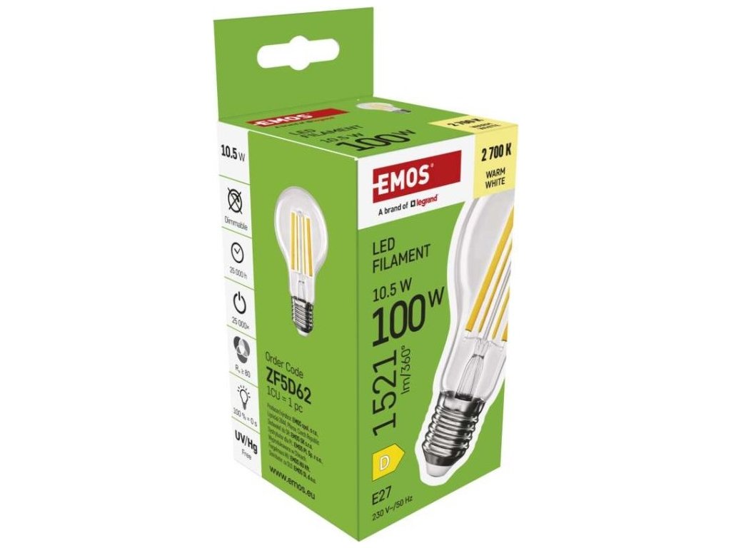 LED žárovka Filament A60 / E27 / 10,5 W (100 W) / 1521 lm / teplá bílá