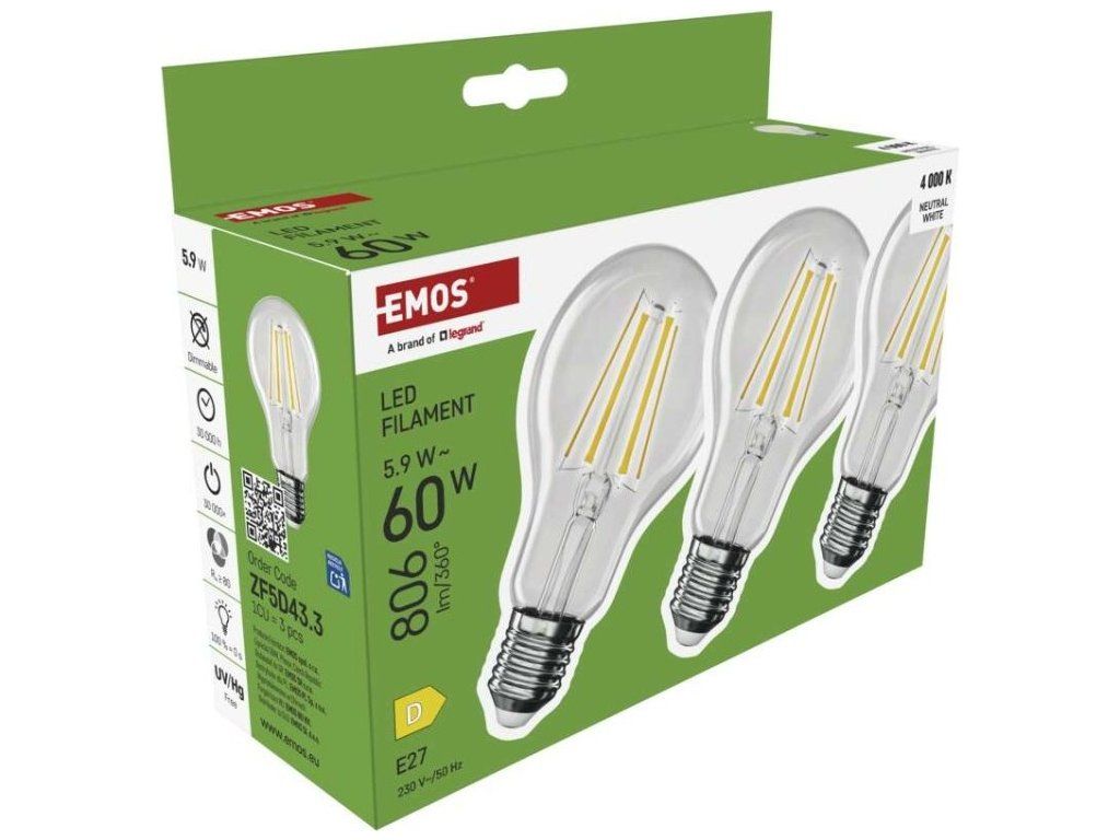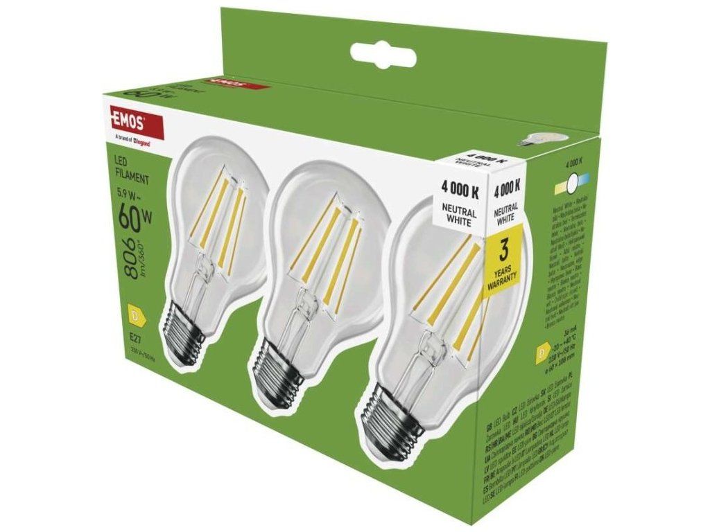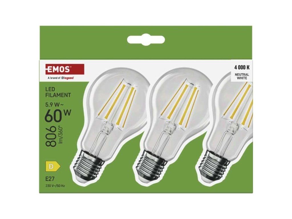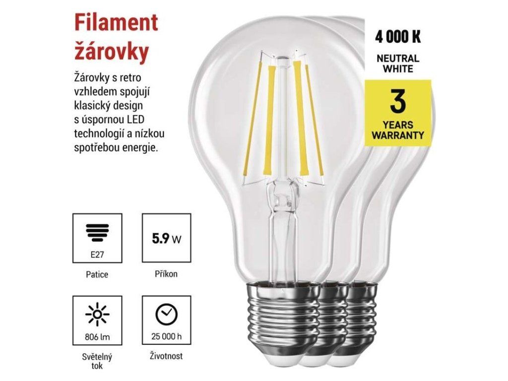 LED žárovka Filament A60 / E27 / 5,9 W (60 W) / 806 lm / Neutrální bílá
