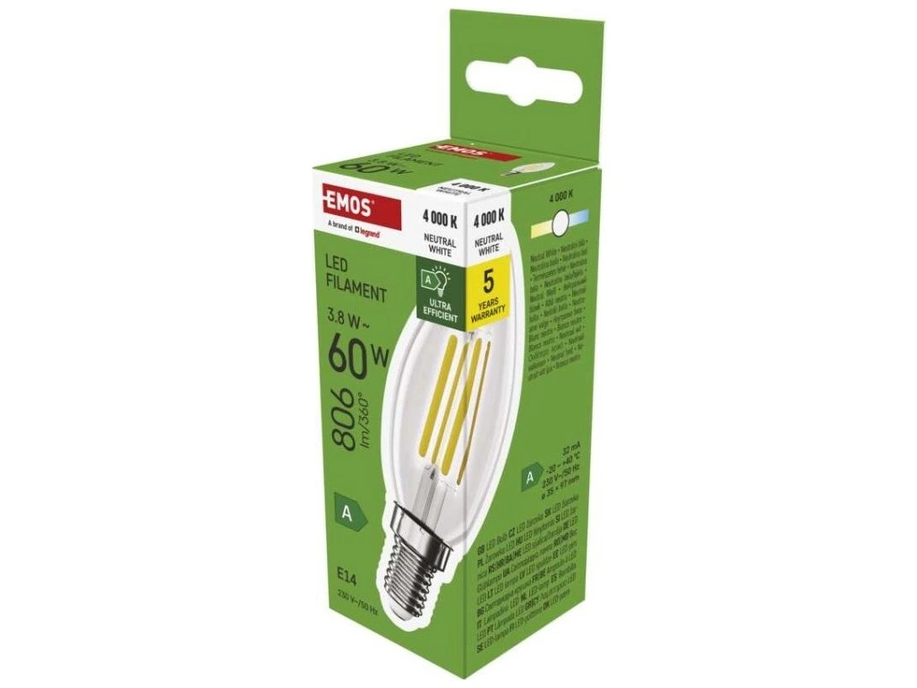 LED žárovka Filament svíčka A CLASS / E14 / 3,8 W (60 W) / 806 lm / neutrální bílá
