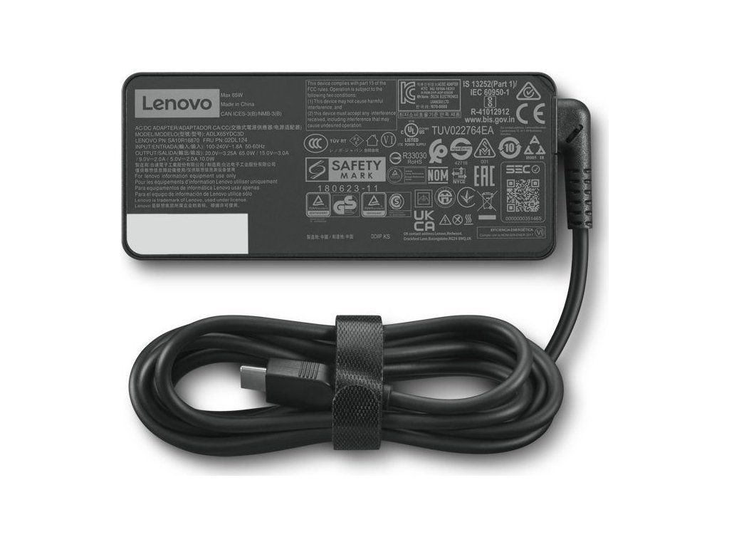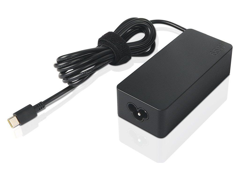 Napájecí adaptér s výkonem 65 W a konektorem USB-C pro notebooky Lenovo. Napájecí kabel do sítě je součástí balení.