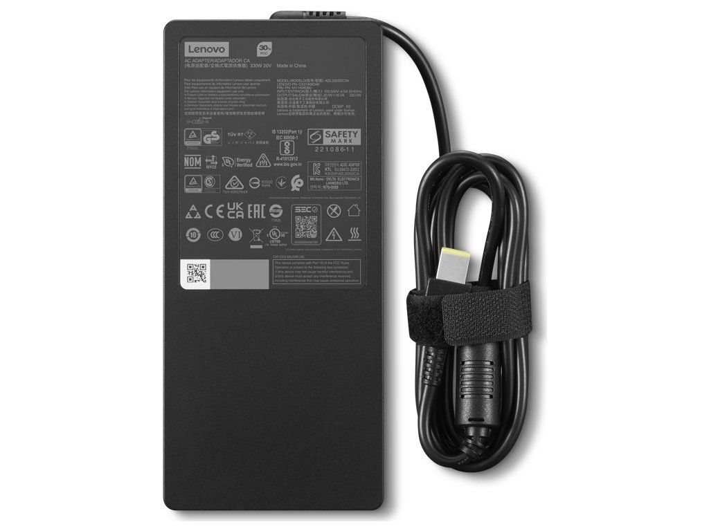 Síťový adaptér Lenovo Legion Slim 330W GaN (Slim Tip) je originální napájecí adaptér s tenkým a přenosným designem. Napájení z nitridu galia (GaN). Je to ideální náhrada nebo náhradní napájecí adaptér pro váš kompatibilní notebook Lenovo Legion.