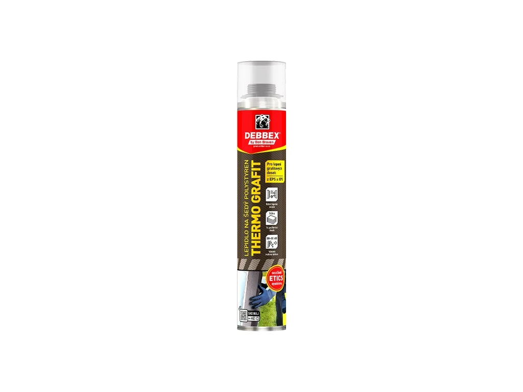 Lepidlo na šedý polystyren THERMO GRAFIT je jednosložková nízkoexpanzní polyuretanová pěna, speciálně vyvinuta pro požadavek lepení lehkých izolačních materiálů a dekorativních prvků z polystyrenu. Výsledná pěna má výbornou strukturu i při +5 °C. Výborná přilnavost na beton, omítku, zdivo, dřevo, polystyren, neměkčené PVC, včetně modifikovaných asfaltových pásů apod.