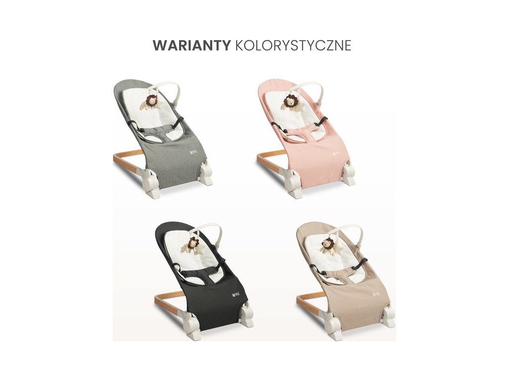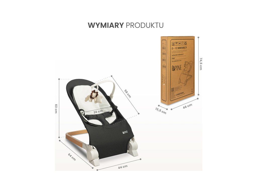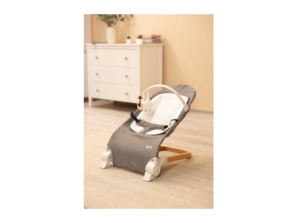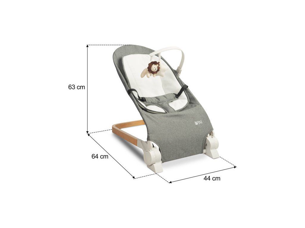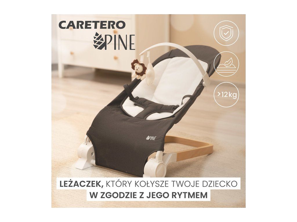 PINE od Caretero to praktyczny leżaczek dziecięcy, który sprawdzi się podczas codziennej opieki nad dzieckiem. Wygodne oparcie można ustawić w trzech pozycjach nachylenia. Leżaczek został wyposażony w pałąk z pluszowymi zabawkami, które zajmą uwagę dziecka. Miękka wyjmowana wkładka poprawi komfort maluszka, a pasy zapewnią bezpieczeństwo podczas użytkowania. Elegancka drewniana podstawa stanowi stylowy akcent, który doskonale komponuje się z wystrojem pokoju dziecięcego.