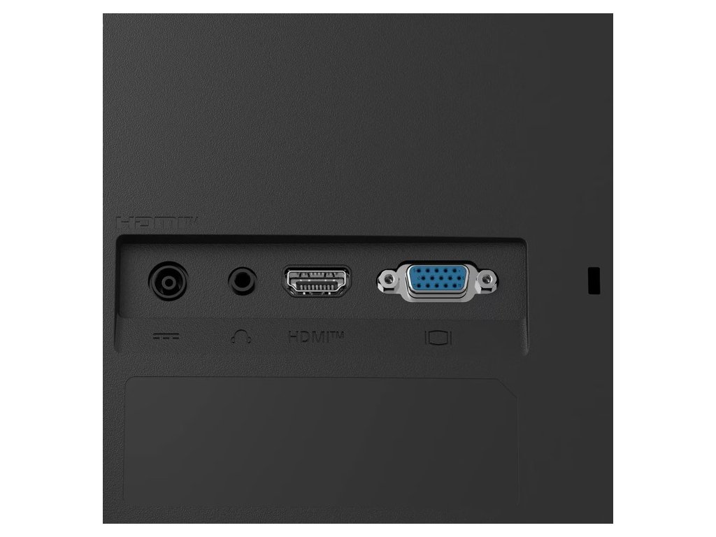 Monitor disponuje HDMI 2.0 portem s HDCP 2.3, D-Sub konektorem a výstupem pro sluchátka. V balení je přiložen HDMI kabel pro okamžité použití.