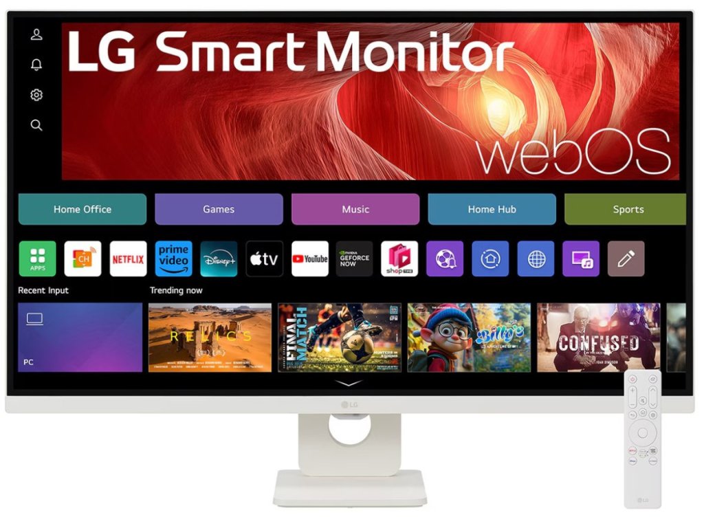 LG Smart Monitor představuje revoluční řešení kombinující vysokou kvalitu zobrazení 31,5" IPS panelu s rozlišením 4K UHD (3840 × 2160 px) a plnohodnotným operačním systémem webOS 24. Monitor nabízí přímý přístup ke streamovacím službám jako Netflix, Disney+, YouTube nebo Apple TV, podporuje cloudové aplikace včetně videokonferencí a umožňuje vzdálený přístup k počítači přes funkci Remote PC.