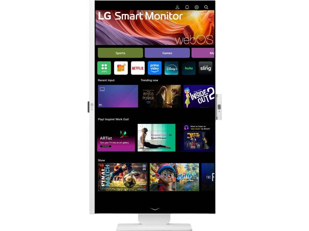 Chytrý LED monitor s úhlopříčkou 31,5" a 4K Ultra HD rozlišením 3840 × 2160 bodů nabízí jas 400 cd/m2, dobu odezvy 5 ms, podporu HDR10 a 95% pokrytí barevného prostoru DCI-P3. Použitím technologie IPS je dosaženo širokých pozorovacích úhlů 178° horizontálně i vertikálně. K dispozici je port USB-C, který kromě vysokorychlostního přenosu videa a dat umožňuje napájení připojených zařízení až do 90 W. Monitor pohání operační systém webOS 24, který umožňuje přístup k mnoha aplikacím pro sledování online obsahu, jako jsou Netflix, YouTube či Disney+, a to bez nutnosti zapínat počítač. Pro tyto účely je monitor vybaven bezdrátovým připojením Wi-Fi a Bluetooth. Pro přehrávání obsahu z USB médií jsou přítomny dva USB-C porty. Monitor podporuje také bezdrátové zrcadlení obrazovky z chytrého telefonu. Samozřejmostí jsou vestavěné reproduktory o celkovém výkonu 10 W. Potěší také automatické nastavení jasu, odnímatelná Full HD webkamera či výškově nastavitelný stojan s funkcí Pivot.
