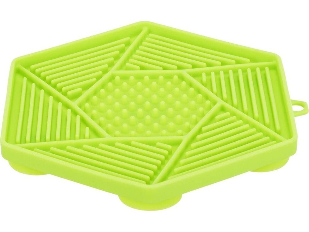 Lick´n´Snack HEXAGON s přísavkami - podložka k pomalému krmení, 17 cm, TPR/plast, zelená