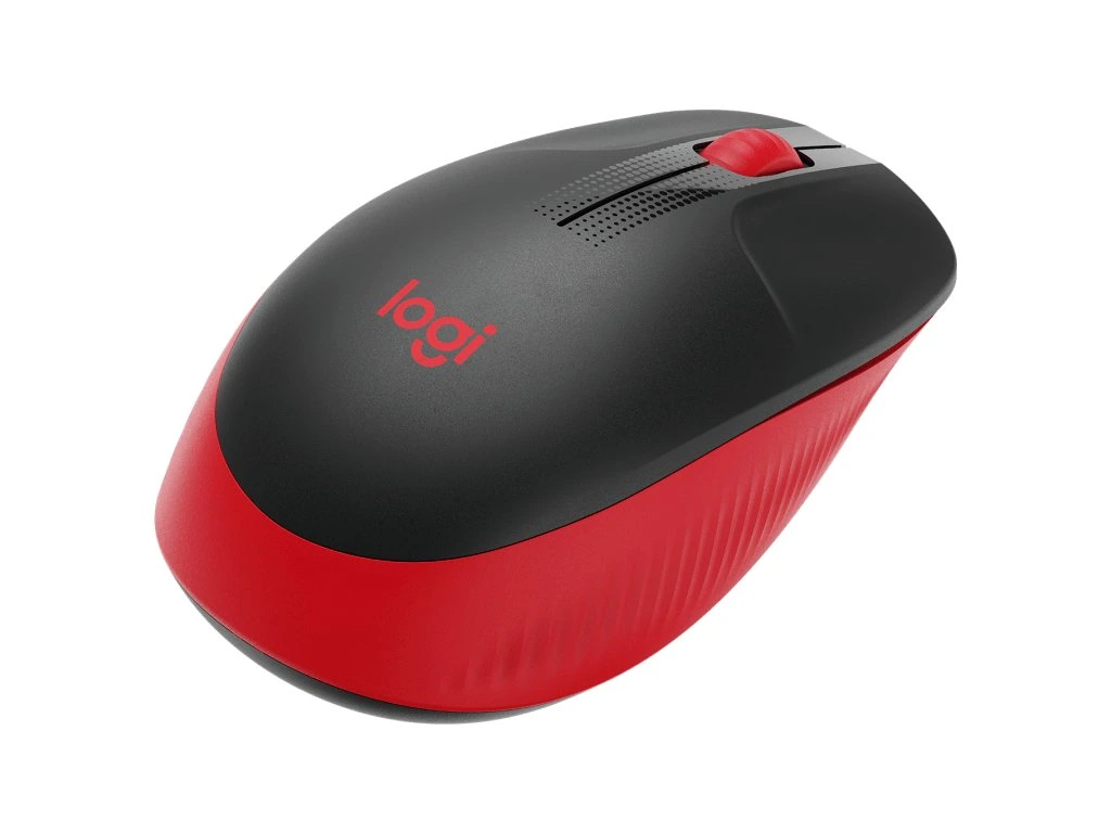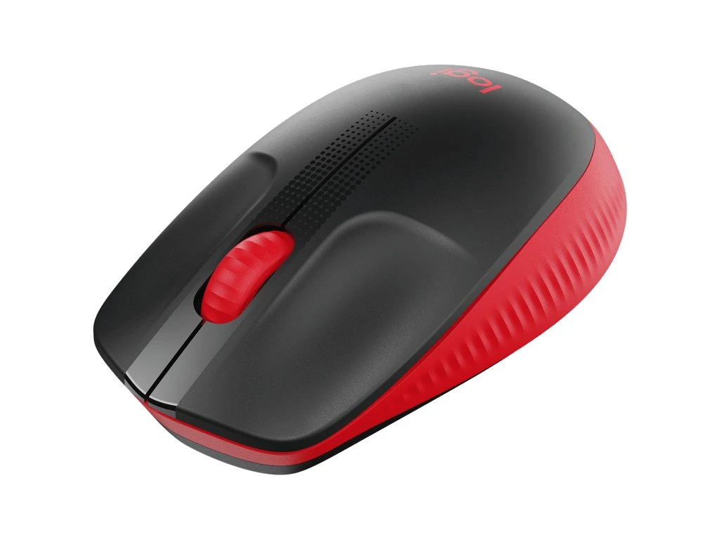 Logitech M190/Kancelářská/Optická/1 000 DPI/Bezdrátová USB/Černá-červená