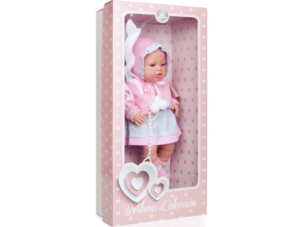 Luxusní španělská dětská panenka-miminko Berbesa Amanda. Panenka má vinylové tělíčko, ručičky i nožičky. Amanda má milou tvářičku, která vypadá jako opravdové miminko. Faldíky na ručičkách, nožičkách a bříšku ještě více připomínají novorozence. Panenka má krásná modrá kukadla, růžové rtíky, ručičky a nožičky jsou pohyblivé v kloubech. Součástí je roztomilý pletený svetřík, pletená čepička s volánkem, šatičky, kalhotky a ponožky. Obleček se dá sundat. Panenka má dudlíček na řetízku. Tělíčko miminka má jemnou vůni po vanilce. Délka panenky je cca 43 cm. Vhodné pro děti od 3 let. Při výrobě jsou používány výhradně kvalitní materiály.