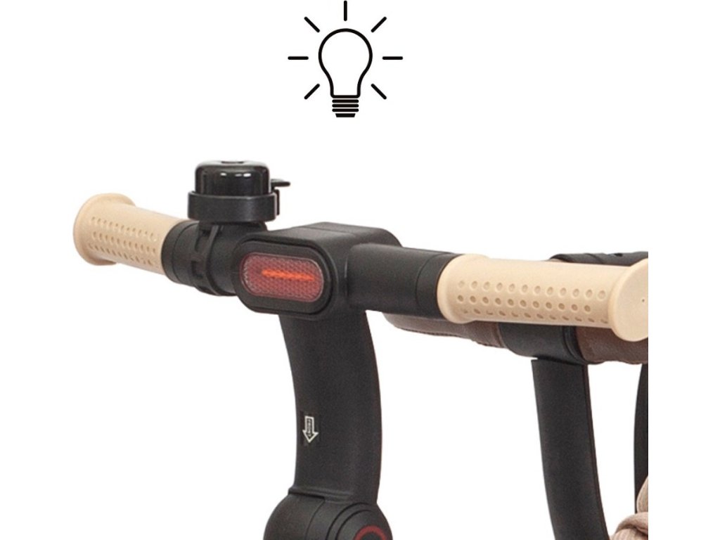 Twinkle je vybavena nastavitelnou rukojetí, funkcí volnoběhu, brzdou, bezpečnostními pásy s chrániči a pohodlným třípolohovým opěradlem a zaručuje úplnou kontrolu a pohodlí pro dítě i rodiče. Její lehký, ale odolný ocelový rám, kola s pěnovou výplní a kuličkovými ložisky, skládací konstrukce a praktické prvky, jako je síťovaná stříška, LED světlo, držák na nápoje a dva úložné boxy, z ní činí perfektní volbu pro každou příležitost – ve městě, na procházce nebo na výletě. Po odstranění rukojeti, kolejnic a stříšky lze Twinkle používat jako klasickou tříkolku.