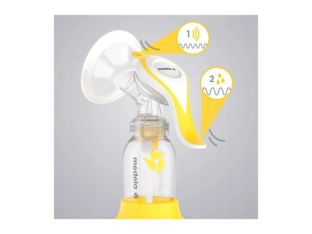 Manuální odsávačka mateřského mléka Harmony Flex™ je odsávačka mateřského mléka, která je založena na 2fázovém rytmu odsávání (fáze poklesu – rychlé a mělké sání a fáze efektivního odsávání – pomalé a hluboké sání).