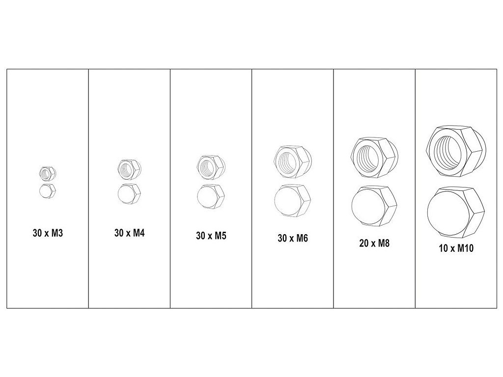 Matice metrické, kloboukové sada 150 ks