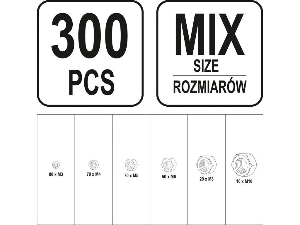 Sada 300 ks kvalitních matic s metrickým M3 - M10 závitem.